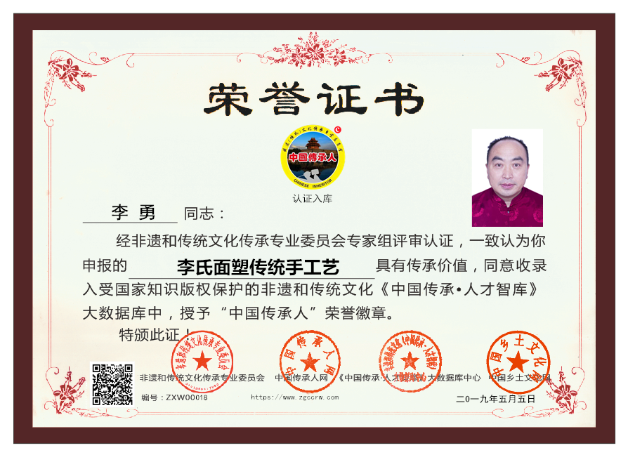 18位“李氏面塑传统手工艺”传承人李勇成功入库《传承人才智库》