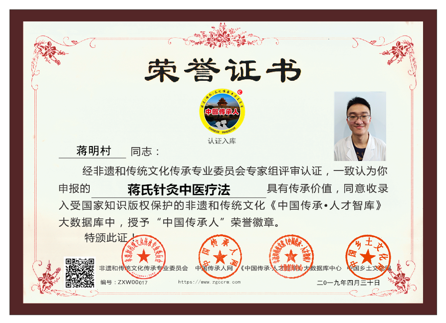 17位“蒋氏针灸中医疗法”传承人蒋明村成功入库《传承人才智库》