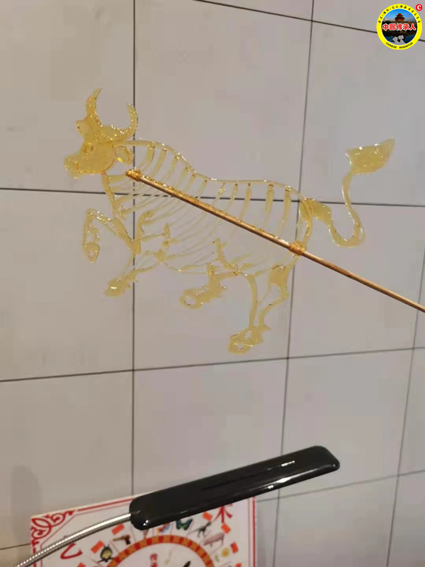 糖画是一种传统民间手工艺,它是用糖为材料来进行造型的。所用的工具为一勺一铲,糖料一般是红、白糖加上少许饴糖放在炉子上用温火熬制,熬到可以牵丝时即可以用来浇铸造型了。据考证,糖画起源于明代的“糖丞相”。清代小说家褚人获的《坚瓠补集》里载,明俗每新祀神,“熔就糖”,印铸成各种动物及人物作为祀品,所铸人物“袍笏轩昂”,俨然文臣武将,故时戏称为“糖丞相”。