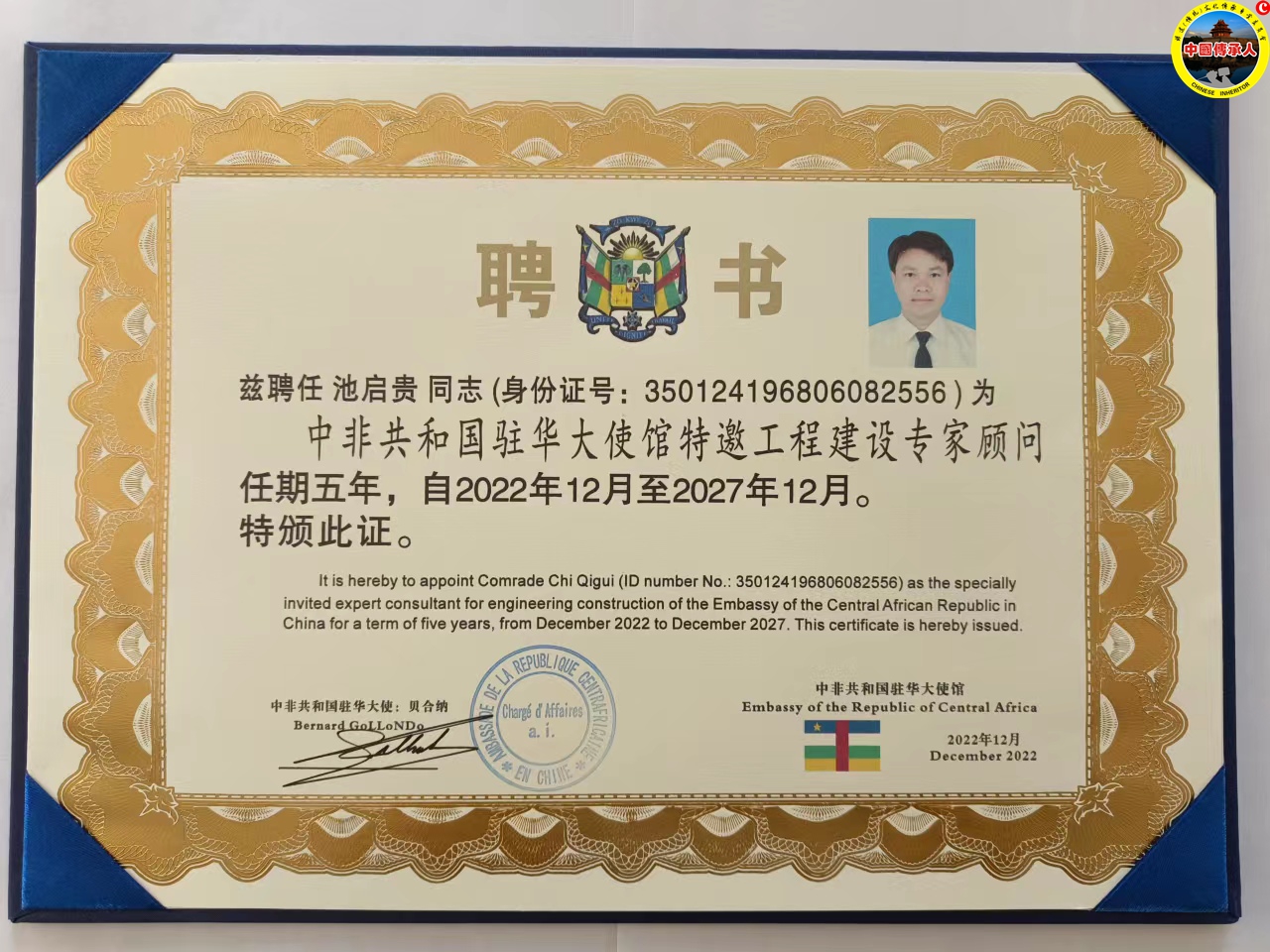 据了解,池启贵1968年6月出生于福建省福州市闽清县上莲乡上丰村,闽清县是福建省八个建筑之乡中排名第一。他家是鲁班传统手工艺木匠世家,其家族世代都从事传统木匠,他祖父池学专和父亲池经瑾是当地著名的木匠,常年带着徒弟受东家的聘请在家乡的邻县(闽清县、永泰县、尤溪县、德化县、古田县等)做木匠,这一生收有徒弟十余人遍布各邻县乡村。池启贵从小受到木匠父亲的基因遗传和熏陶,他通过不断努力学习,自学成才,取得了四川大学建筑施工与管理专科、四川师范大学房地产与经营管理专科、中国地质大学法学本科、江苏大学土木工程本科学历,被评为高级技师、高级工程师、高级经济师技术职称,考取得了国家注册监理工程师(房屋建筑、市政工程、水利水电工程专业)、注册建造师(市政、建筑、公路、水利、机电工程专业)、国际注册高级项目管理师(PMP)等执业资格证书。2015.10-至今创办了福建闽峰建设工程有限公司、福建鲁班建设科技集团有限公司(子公司:福建卓普建设有限公司、平潭鲁班建设有限公司、福建云森建设工程管理有限公司)并担任董事长。现兼任中非共和国驻华大使馆特邀工程建设专家顾问、福建农林大学专业学位研究生校外指导教师、福州工商学院客座教授、中国管理科学研究院学术委员会委员、中国建设监理协会专家委员会委员、中国工程建设标准化协会标准审查专家、中国施工企业管理协会质量专家库专家、中国建筑业协会劳务专家委员会委员、福建省工程监理与项目管理协会咨询委员会副主委、福建省工程建设标准化专家、福建省建筑门窗工程技术专家、福建省建设工程安全专项施工方案论证专家、福建省建设工程质量安全协会闽江杯评审专家、福建省土木工程建筑行业协会专家、福建省工程系列土建专业高级职称评委会委员、福州市鼓楼区人民政府第一届应急管理专家委员会专家、福州市政府投资设计变更专家库专家、福州市轨道交通专家库专家、福州市农房建设安全专项督导组专家、福州市工程和经济系列高级职称评委会主任或组长、福建省国资人才中心工程系列职称评委会主任、福建省姓氏源流研究会池氏委员会常务理事、福建省姓氏源流研究会池氏委员会闽清分会顾问、闽清县工商联上莲商会副会长等。