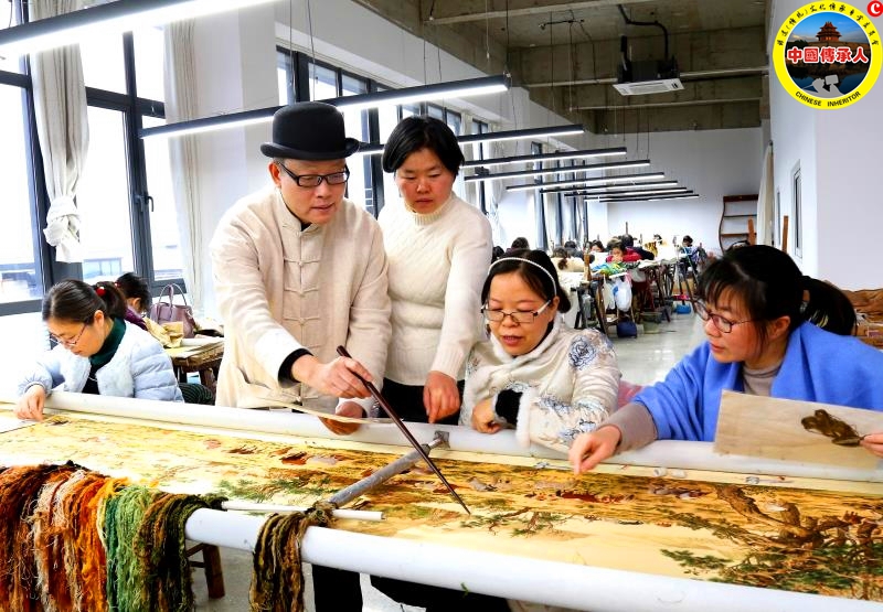 沈德龙,“古吴绣皇”品牌创始人,乱针绣创始人——一代宗师杨守玉的第三代传人,得到其入室弟子——第二届中国工艺美术大师、“现代针神”任嘒闲先生乱针绣真传。他1990毕业于中国美院,同年,师从任嘒闲先生,他不用画稿,对着镜子完成了自己第一幅刺绣作品《自绣像》,不仅得到国大师任慧娴先生的首肯,而且作品被苏州刺绣研究所收藏;随后绣制的《梵高绣像》也同时被苏州刺绣研究所收藏。