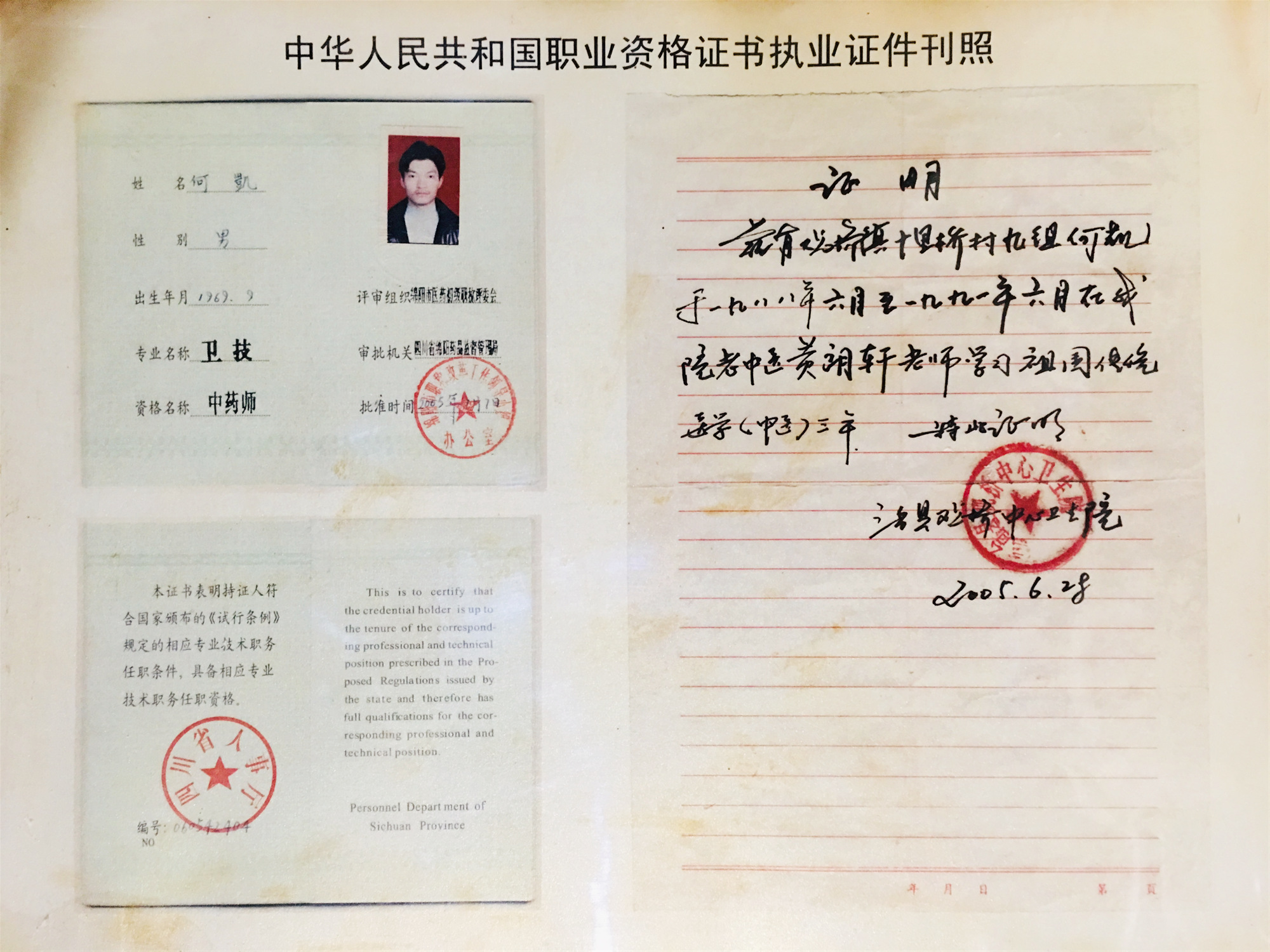 简介:何凯,汉族,1969年出生,大学专科文化。灸粟品牌创始人。高级针灸推拿师,中药师,家族古中医第六代传承人,佛家弟子,号净行居士,绵阳市名中医黄朗轩之关门弟子,绵阳市知名针灸保健民间高手,成都市灸粟保健馆特邀养生顾问,擅长平衡推拿术,中国灸内病外治术。他通过对古典中医经方养生,灸疗、针疗、刺血、食疗等高段位技术的娴熟而独到的运用,对脑中风后遗症、颈胸腰膝痛、胃肠高难度溃疡、重症患者免疫力低下、疑难妇科杂症、不孕不育、习惯性流产、母乳缺少、焦虑抑郁失眠等症状有特殊效果。一心本着"针灸行善,潜心修缘"的目的,悬壶济世至今,登记在册的各种患者近两万余人,效果优良,口碑上好!甘洒热血书写中医文化自信!