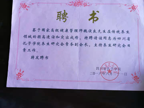 创办了成都古贤养生文化传播中心,中心从2018年试运行以来,已经有40多位不同行业、不同年龄,热爱126少阴特色养生文化的热心人正式拜师成为了弟子,他们当中自己开店宣传推广的已经有三家,有几位弟子不停地在成都市甚至全国的养生、美容行业宣传、推广、合作。中心从成都市迁移到龙泉驿区蔚蓝路64号门店以来,有江苏、北京、云南等地经别人介绍而来,现今中心已经具有一定的影响力,受到了群众的一直好评,关心热爱。魏俊良希望未来大家一定要提高对传统养生文化的认知,一起推广宣传,一起共享健康。