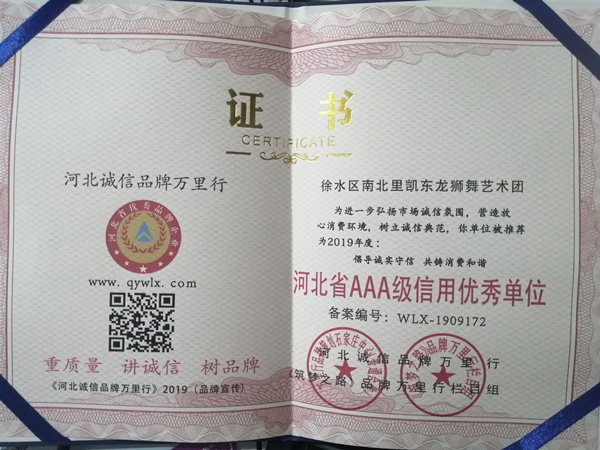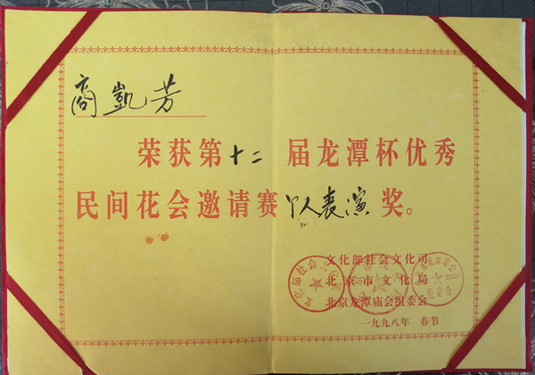 8、9、12届龙潭杯全国民间花会大赛最高奖《优胜奖》。