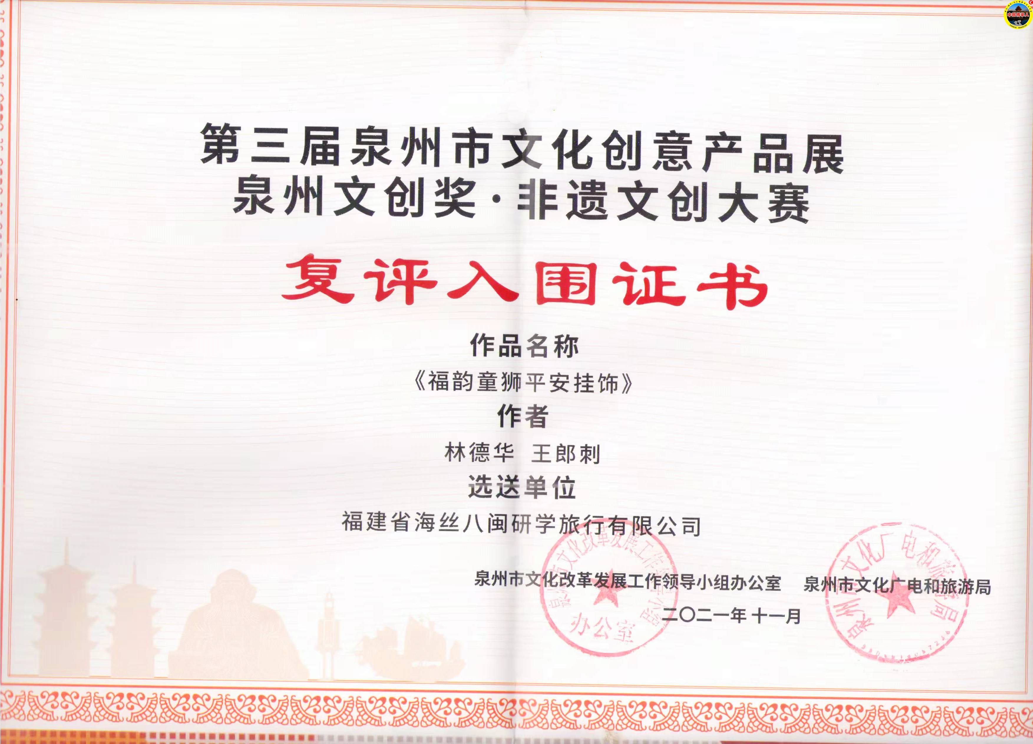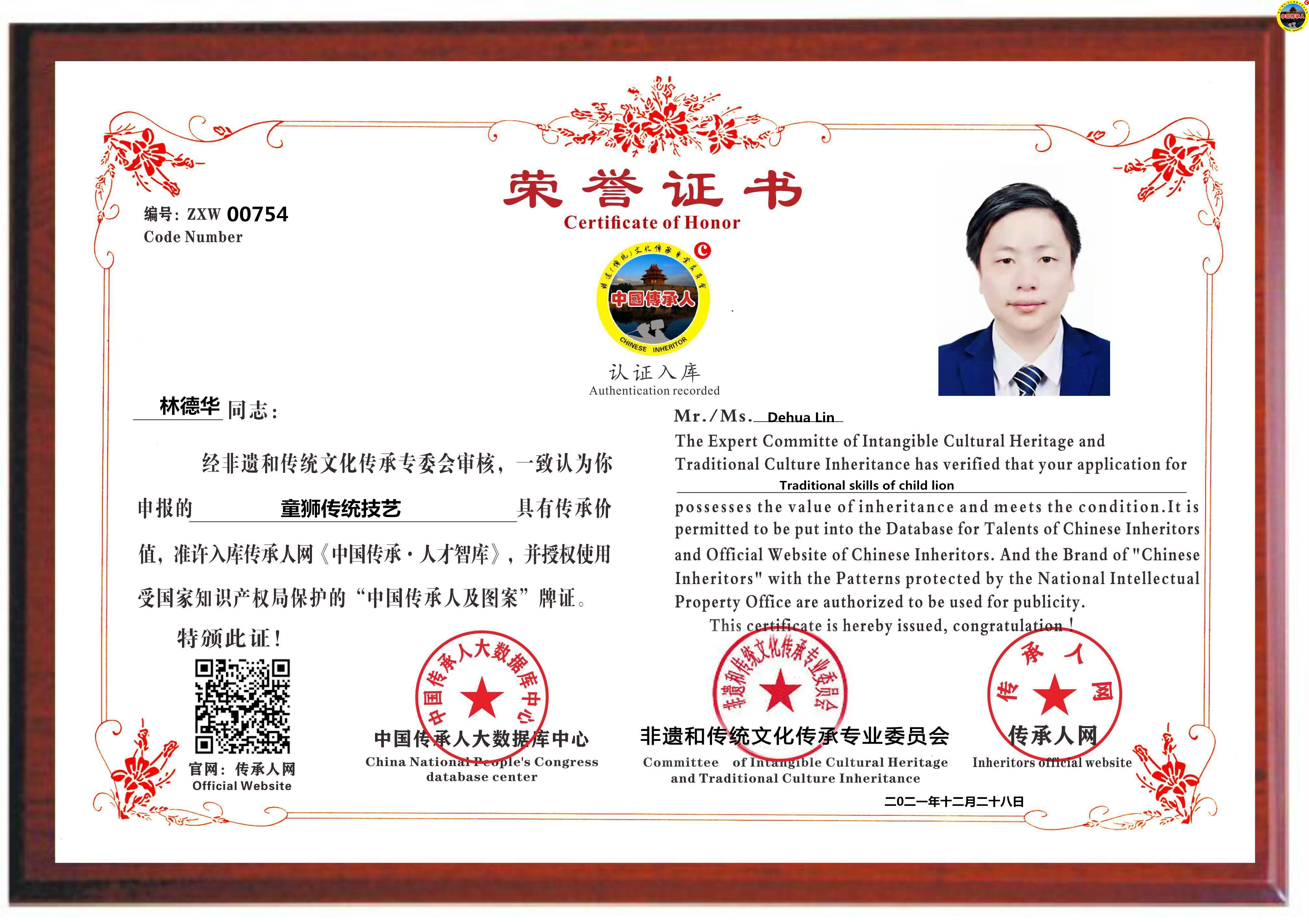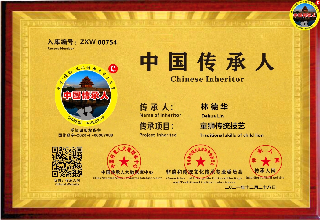 近年来,通过科学抢救、挖掘、保护、传承、宣传推广,童狮文化又“活”起来。童狮,生动活泼可爱,充满童真童趣,充满青春活力,象征着乡村发展新活力!林德华对童狮的活态传承与创新转化获得了福建省文化和旅游厅 “全福游、有全福”最美福建旅游产品创意设计大赛(旅游线路)最佳创意奖;参加福建省艺术馆(福建省非物质文化遗产保护中心)“非遗过大年—福建省非遗短视频大赛”荣获二等奖;在第六届(2019)福建文创奖非遗文创开发类中荣获入围奖;参加泉州市文化改革发展工作领导小组办公室、泉州市文化广电和旅游局第三届泉州市文化创意产品(泉州文创奖·非遗文创大赛)优秀奖。