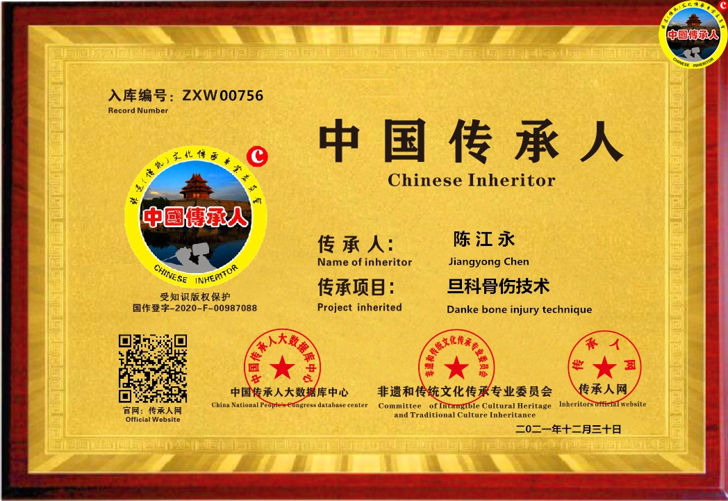 中医是我国的国医国药,是祖国的瑰宝,是几千年来与疾病抗争中,积淀下来的精华,必须不断的发掘、研究、总结、传承!陈江永是旦科骨伤第三代传承人,在众多有识之士极力提倡和大力推动下,陈江平与陈江永姐弟二人整合资源,联合创办福州万福堂健康管理有限公司,传承祖辈医术技艺,努力发展家传医学,发扬祖国传统医学,传播中医药文化!