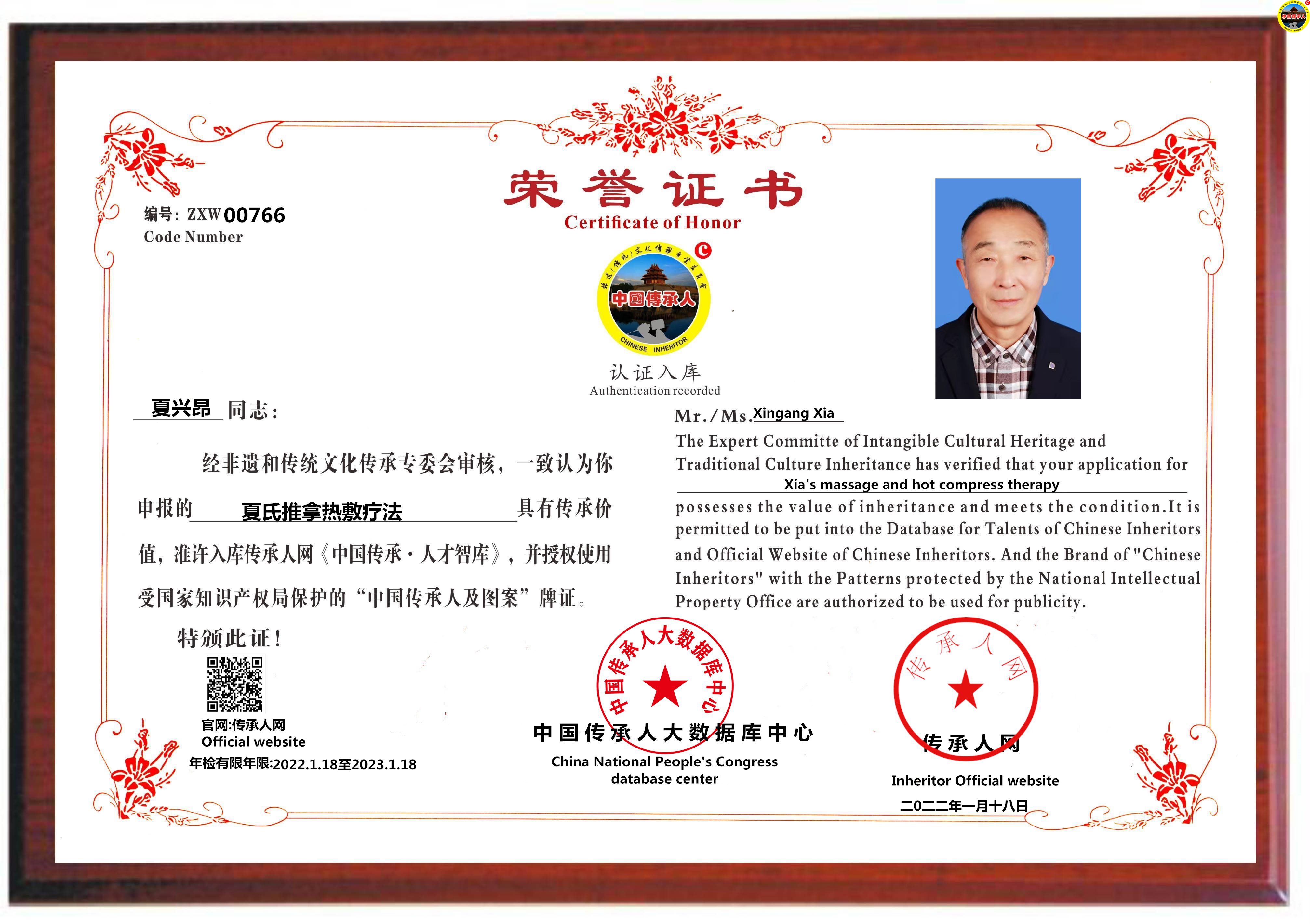 简介:夏兴昂,1963年出身于江苏连云港灌云县,中医世家,毕业于北京光明中医学院(1985年-89年),夏氏医术至父夏绍鑑已数代,擅长治疗骨伤、针灸、推拿、妇儿及疑难杂症。1990年后随父侍诊,2003年在苏州盛泽镇创办《夏氏针灸推拿》,2009年-2018年迁至沭阳县桑墟镇开办《夏氏针灸推拿》,在此过程中多次赴全国各地交流学习。
