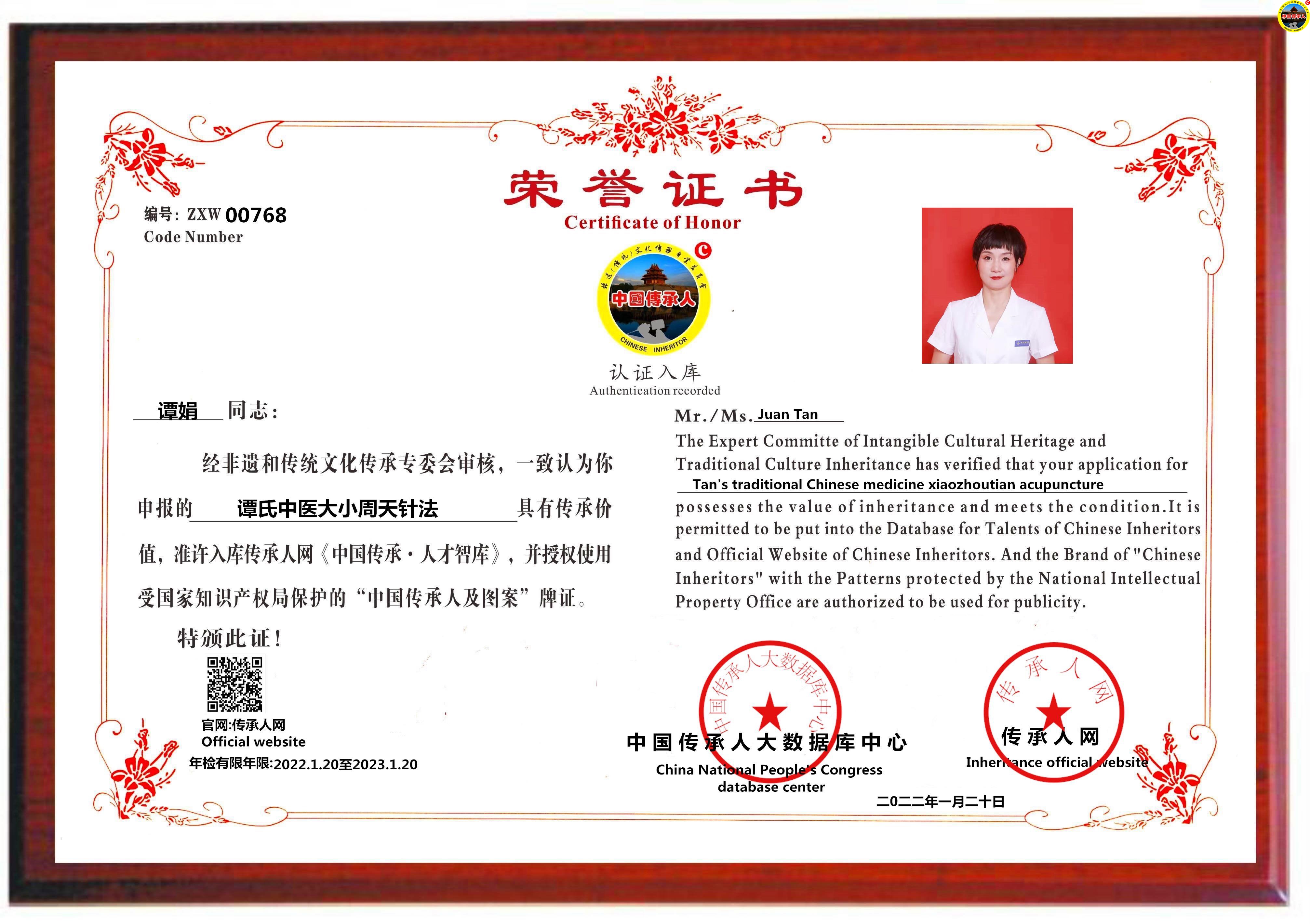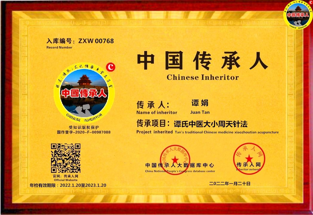 药师法门大小周天针灸疗法(版权号为国作登字-2021-A-00213184)是由谭娟在学修药师法门针灸前行禅以后,根据多年的临床经验,自创的一种治疗方法。用这个方法,传承人治疗好了许多心梗、脑梗、中风偏瘫、白血病、肾衰竭、强直性脊柱炎、抑郁症、自闭症、癫痫等等重症和疑难杂症。
