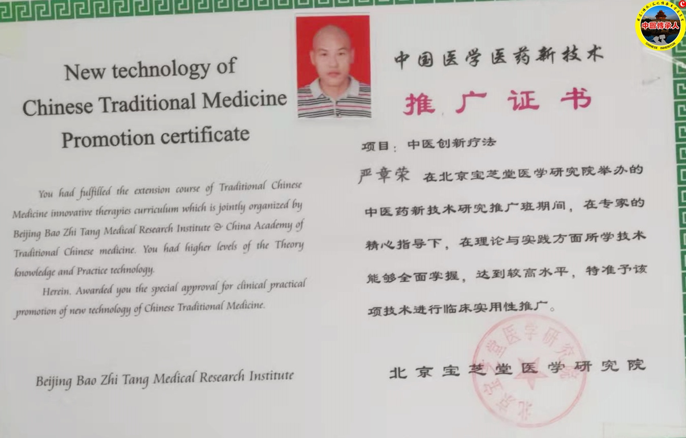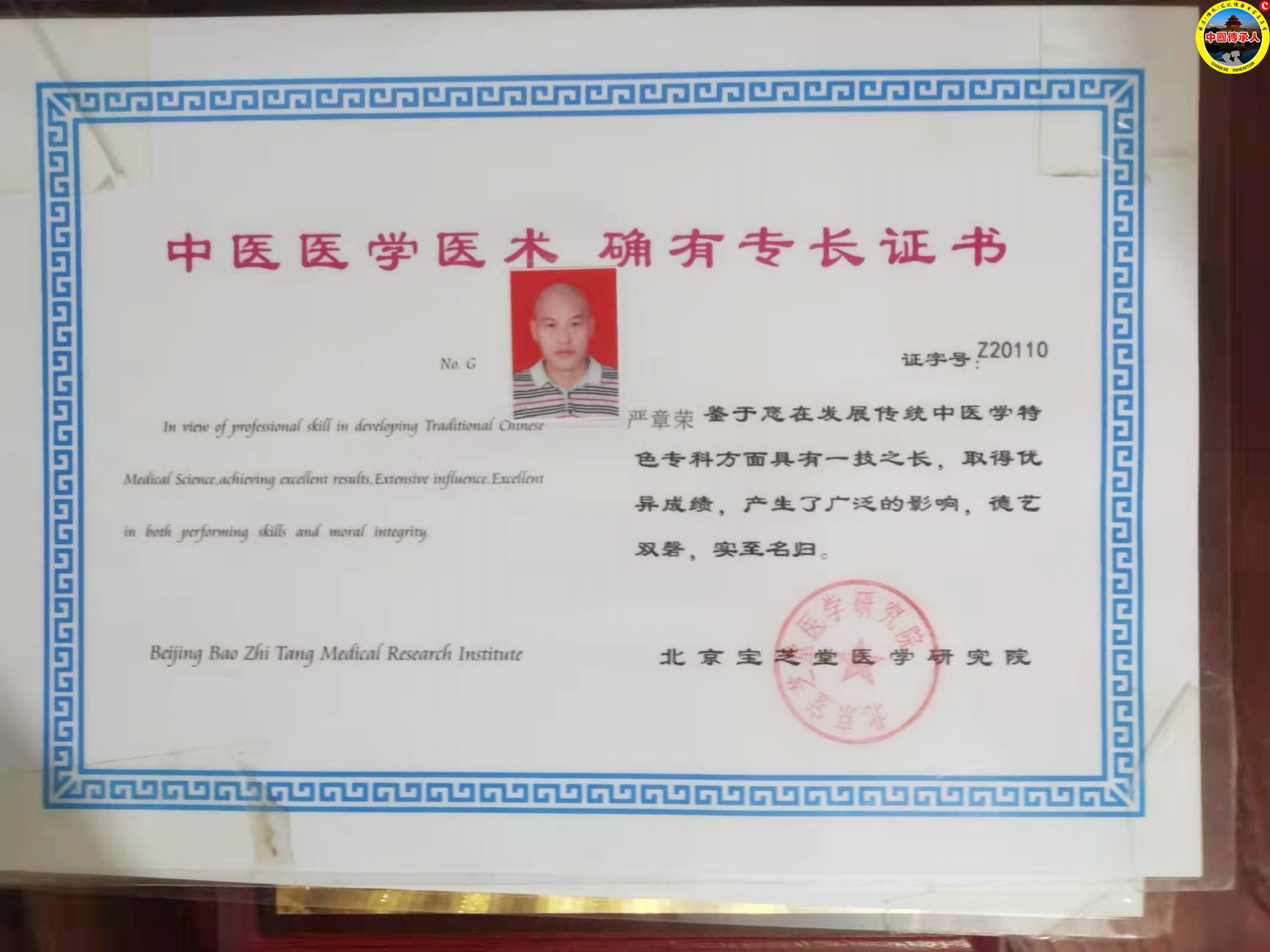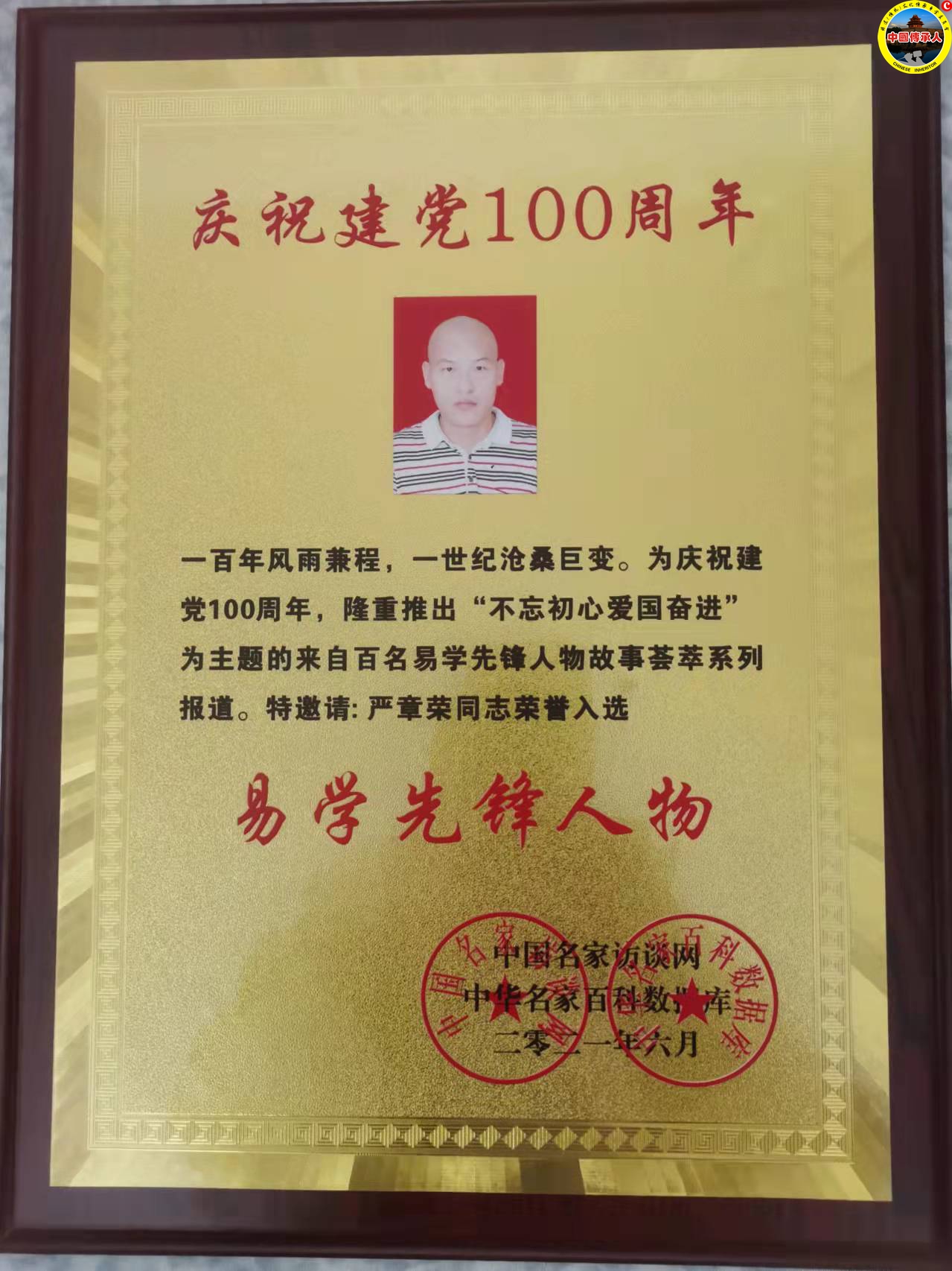 严章荣是民族卫生协会专家委员,获得学易经先锋人物称号。