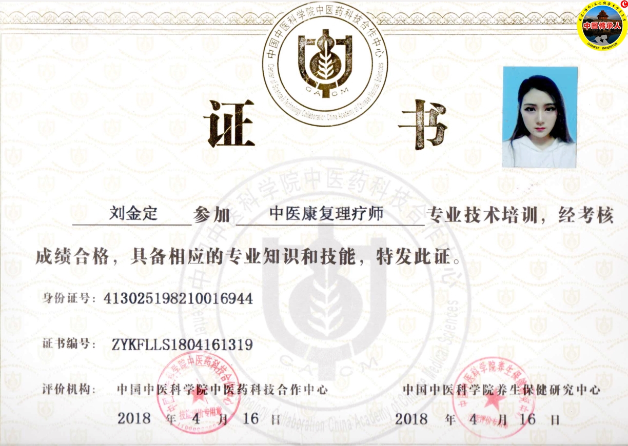刘金定,2000年跟随祖父修学“五行藏筋术”古法技艺,跟从祖父游历大江南北,先后治疗过几百位伤筋病患患者,对颈椎病,肩周炎,手麻,腰肌劳损,脊柱侧弯,坐骨神经痛,网球肘,膝关节疼,腰椎间盘突出……效果显著。