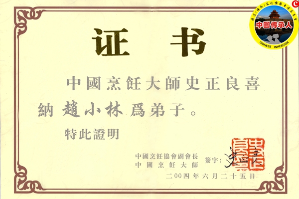 2004年6月25日,拜川菜泰斗史正良为师;多次陪师傅进行菜品现场演示教学。从86年学厨至今,赵小林35年来一直坚守在厨师行业,潜心研究菜系,努力变通菜法,秉承师训“传承不守旧,创新不忘本”。赵小林用35年时间精通川菜,旁通其它五大菜系。用创新精神将川菜的精髓和其他菜系相结合,打造更加符合市场需求、别具一格的时尚美食。特别是在绵阳米粉的传承和创新上,将川菜的味型、色香味等优势在传统的绵阳米粉上融合体现,让绵阳米粉焕发了新的生机。