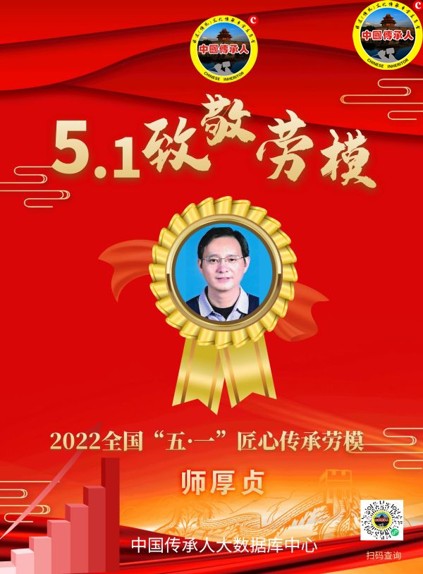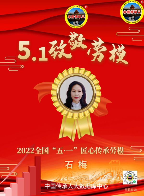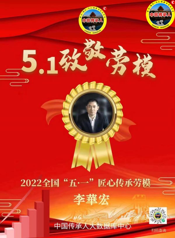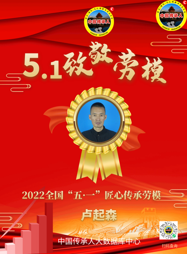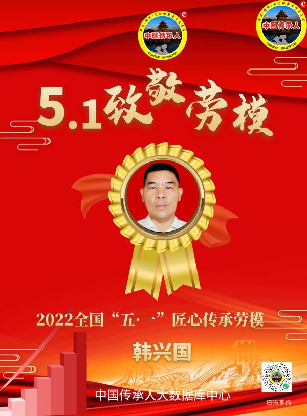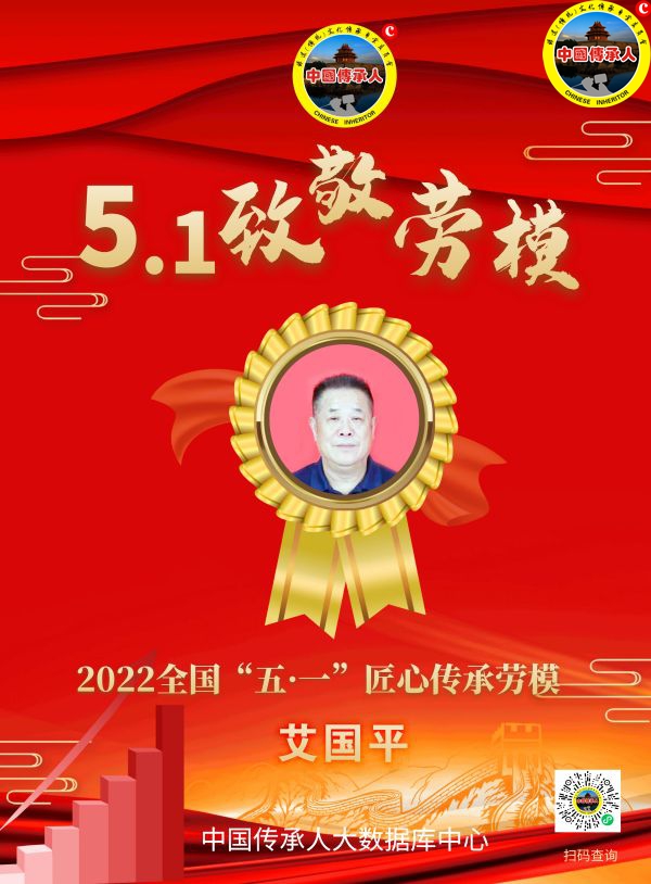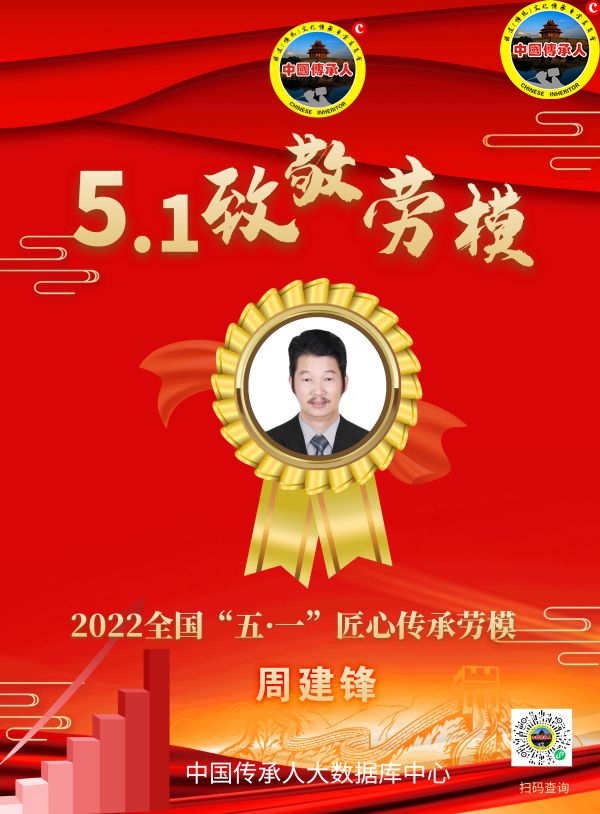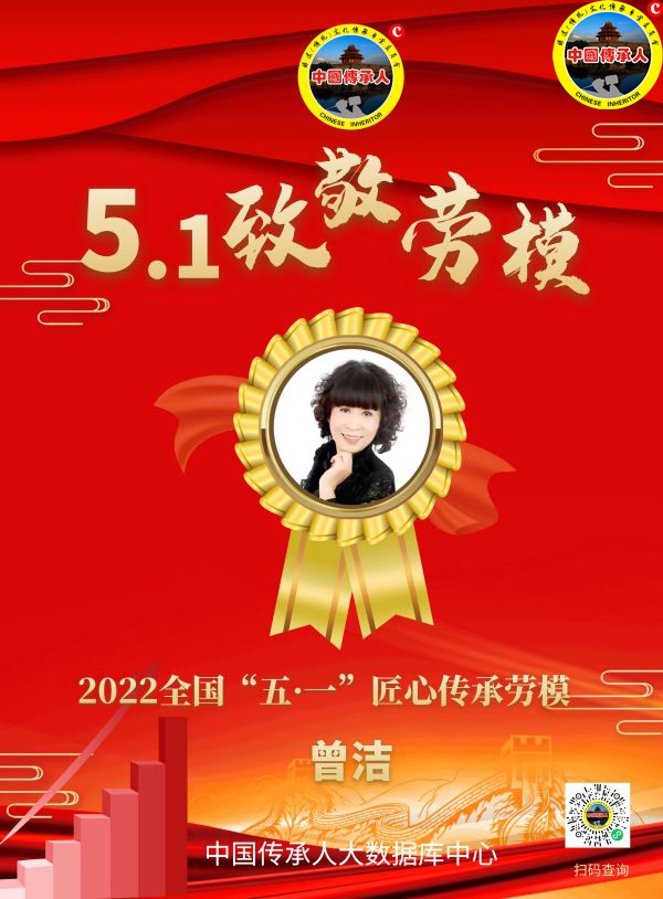 传承人网:在2022年“五一”国际劳动节前,中国传承人大数据库中心对36位中国传承人授予“全国五·一匠心传 承劳模”荣誉称号,并将授予“全国五·-匠心传承劳模”荣誉锦旗、授带、奖章。让我们为这36位传承人鼓掌,以他们为榜样,助力非遗和传统文化发展,匠心传承,为实现中华民族文化复兴的“中国梦”而努力奋斗。