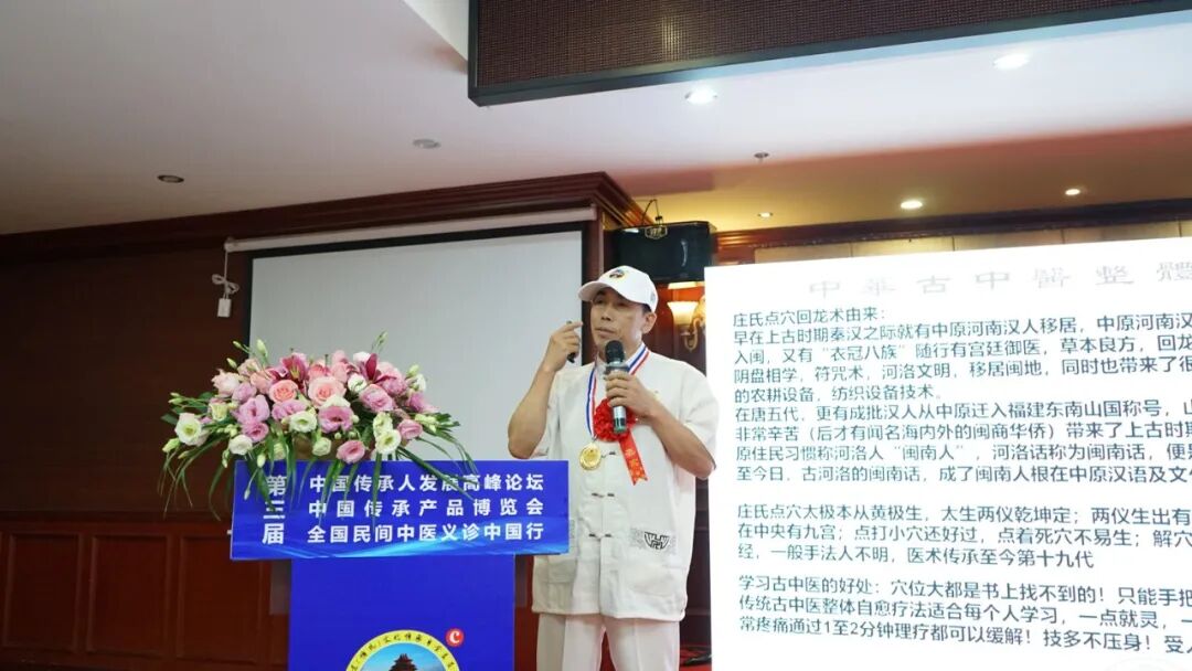 “文化复兴,砥砺前行”。2022年10月11日,在万众期待中,由中国传承人大数据库中心、四川省传人科技集团有限公司主办的第三届中国传承人发展高峰论坛在福建省厦门市隆重举行,同时举行的还有第三届中国传承产品博览会以及第三届全国民间中医传承人义诊活动,本次活动以人人都是传承人,中华传统文化伟大复兴“中国梦”的践行者为主题,来自全国各地的近百名传承人们积极踊跃的参加,热情的交流,结下了更加深厚的友谊,相信未来传承人将开展更多元、更深入的合作,共同做大做强传承人事业。