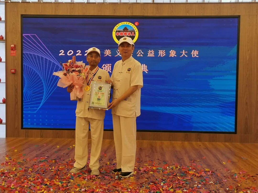 “中华文化传播和传承优秀践行者”第二名——周云龙(其徒弟张继义代领)