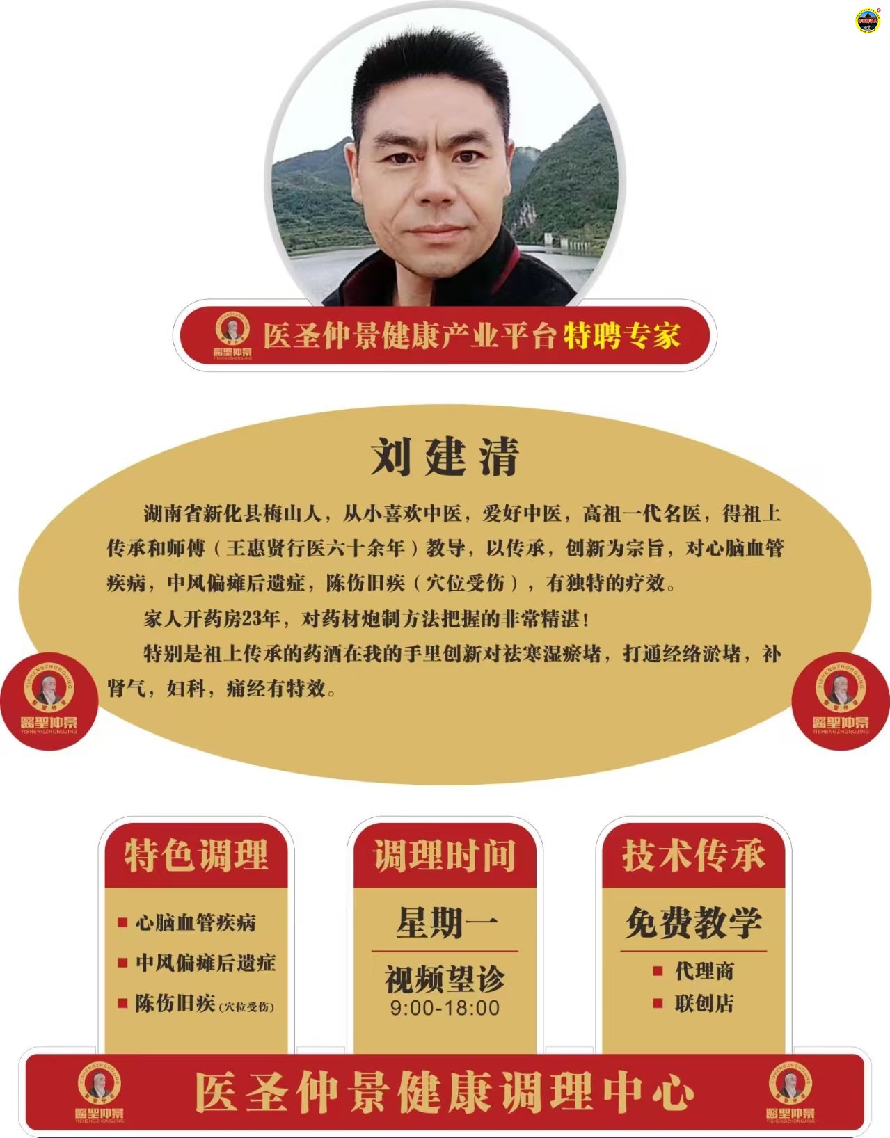 据了解,刘建清,男,汉族,从小喜欢中医,爱好中医,高祖镜山先生一代名医,留下珍贵的偏方验方。梅山医学和武术本就是当地的非物质文化遗产,上辈人人人都会武术和医术的。2011年,他回到家乡重拾中医,2012师从(老中医王惠贤),师徒两在其弟的药房坐诊全科,客户遍布全国各地。2018年10月加入新化县梅山民间医学文化研究会,2019年进入国家中医药祖庭仲景智库专家库,2021年任命副会长,2023年任命娄底市中医药协会副会长。