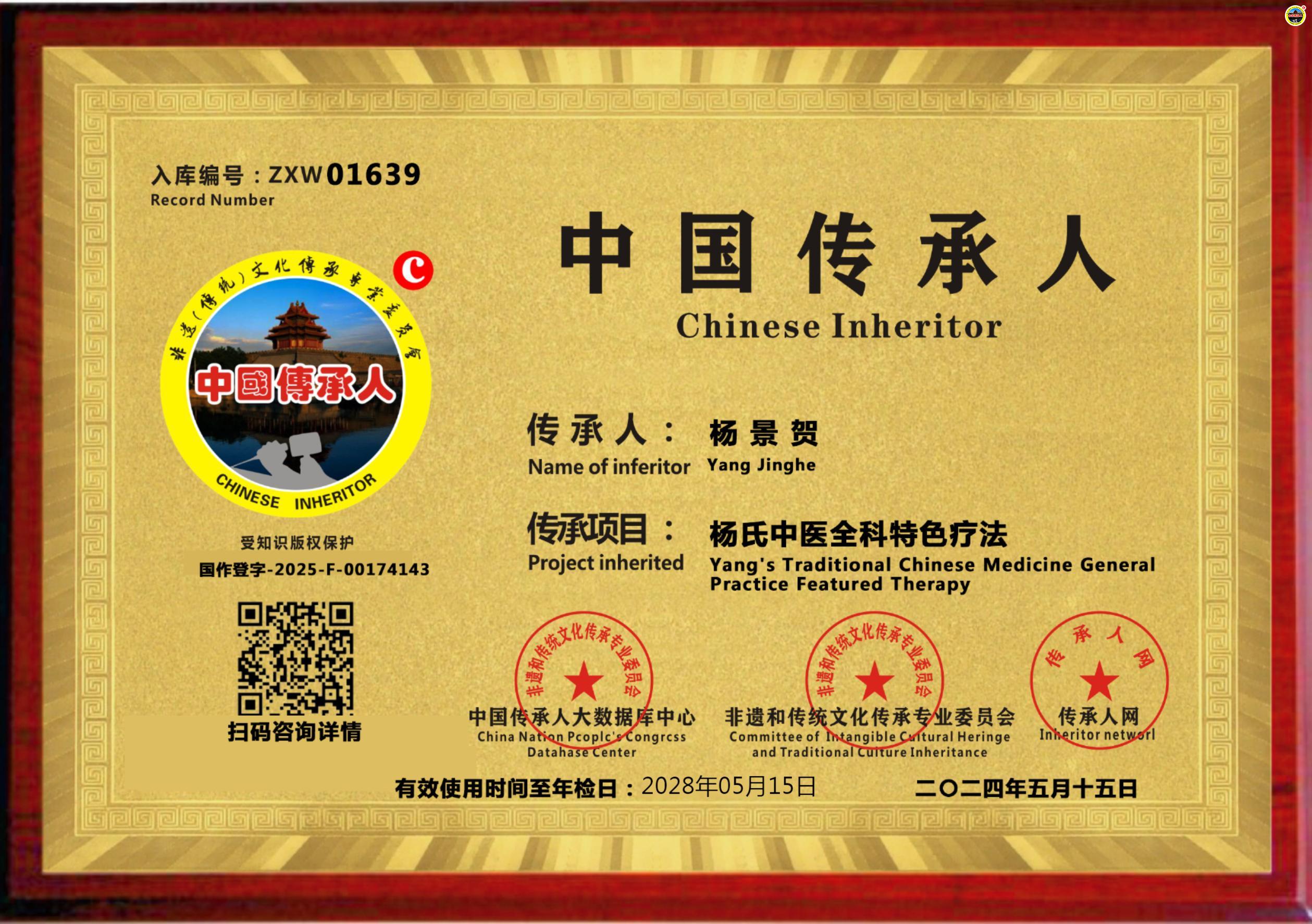 杨景贺,出身中医世家,现任广东环邦本草生物科技研究院院长、世界中医药学会联合会一技之长专业委员会副会长、中国民族卫生协会难治病研究专家委员会委员、中国管理科学研究院经济发展研究中心客座教授、中国茶疗养生产业技术创新战略联盟专家、中国抗癌协会研究员。