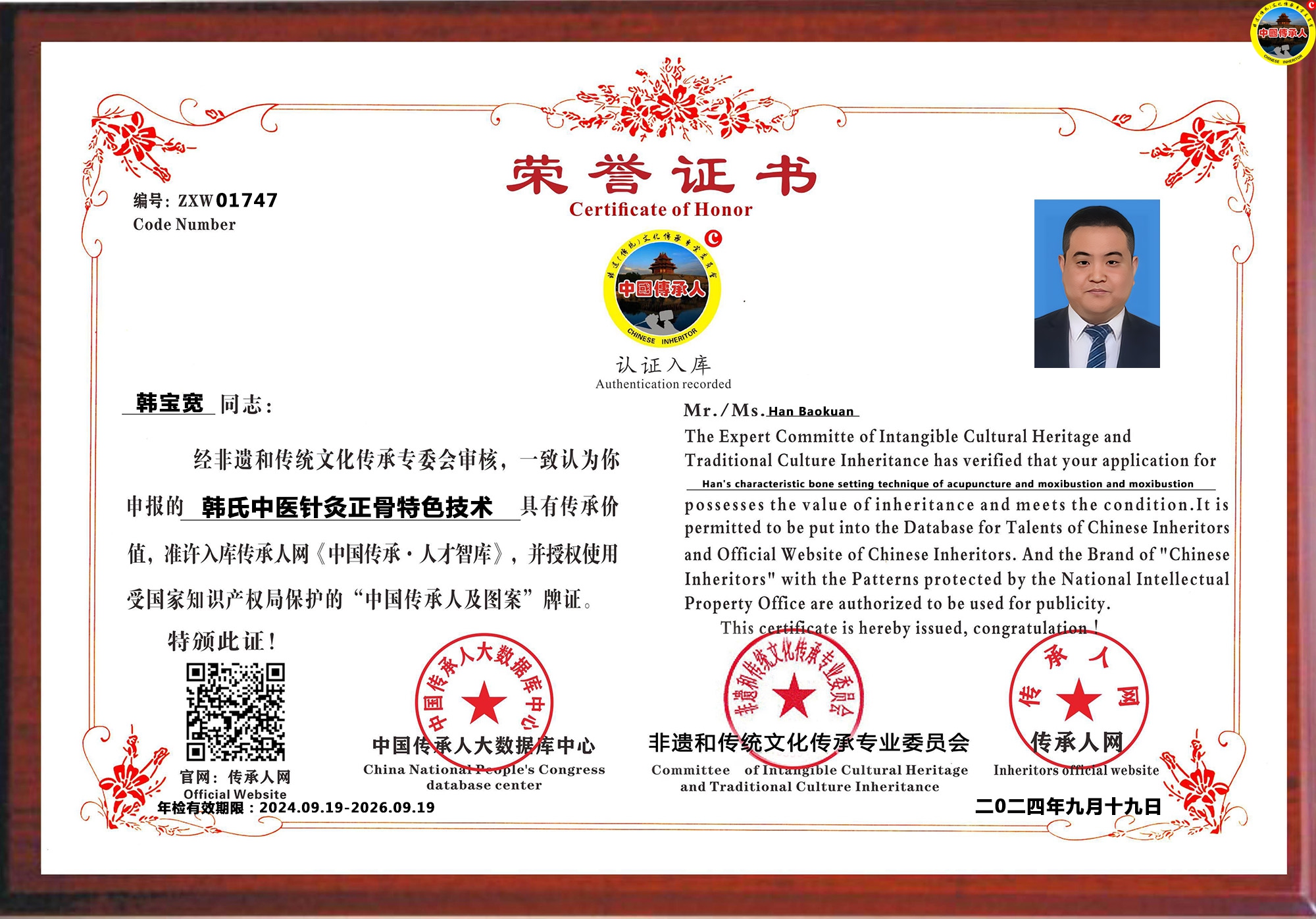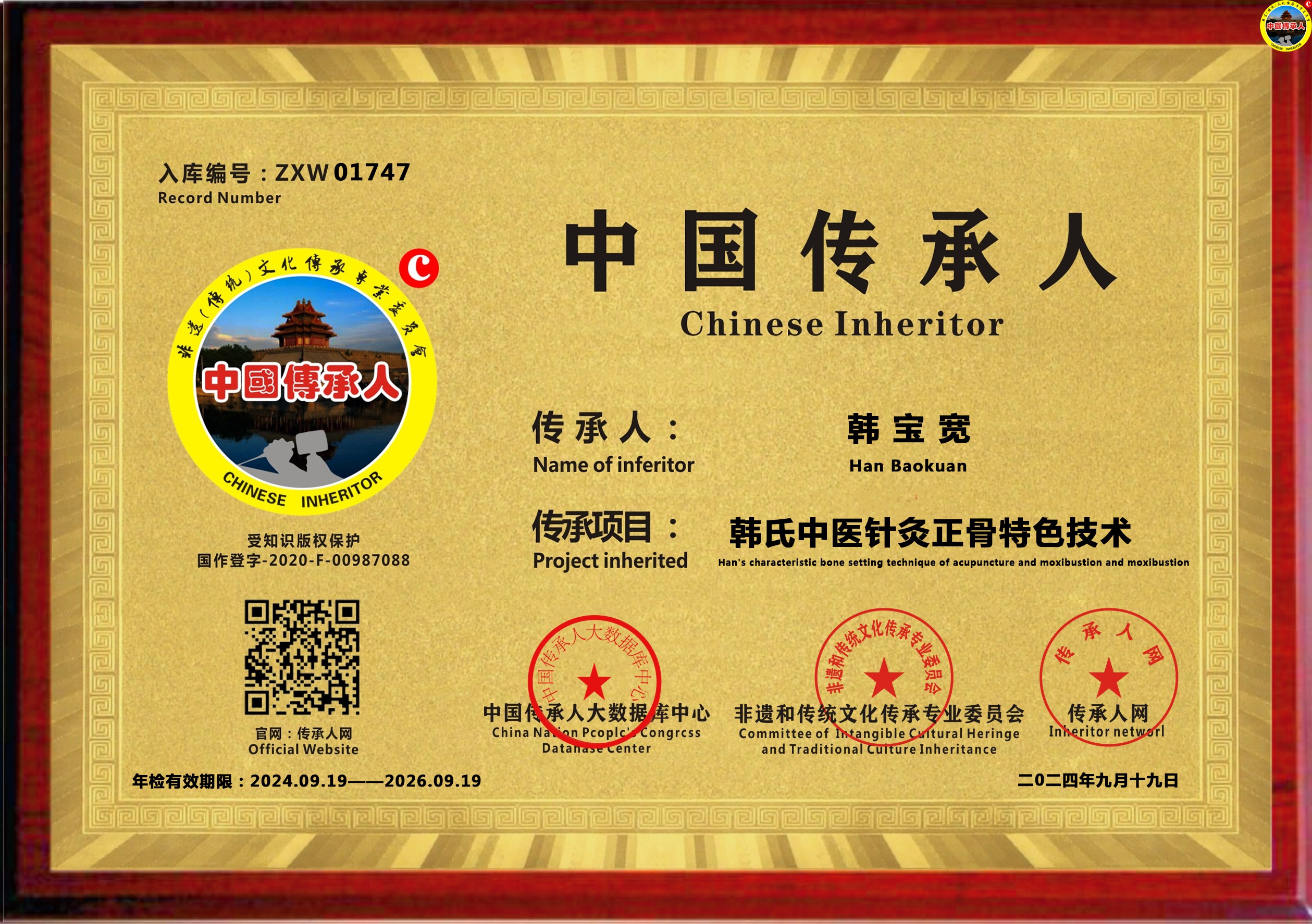 韩宝宽,男,擅长中医十二经络调理、针灸、正骨、妇科等方面调理。1999-2003在辽宁沈阳学习中医,主修推拿正骨,中医基础理论、中医诊断学,2003-2007跟随沈阳公安医院段主任学习点穴,配穴,软组织骨关节病症,2007-2010跟随古玩鉴赏家夏景春学习文玩鉴赏,成为家庭健康管理师为全家人做调理,2010-2013在沈阳经营高端会所-羽星会馆,经营期间接待过很多明星和各级领导,2013-2017与孟河医派魏氏中医第十代传人曹邦国共同开设中医馆,多次举办义诊,2017-2020加入中科医学集团担任磐安本如国医馆馆长,中医经络调理技术总监一职,2020-2023在南京市华夏良子集团担任中医专家,绰号“金刚王”,业绩在全上海区域名列前茅。