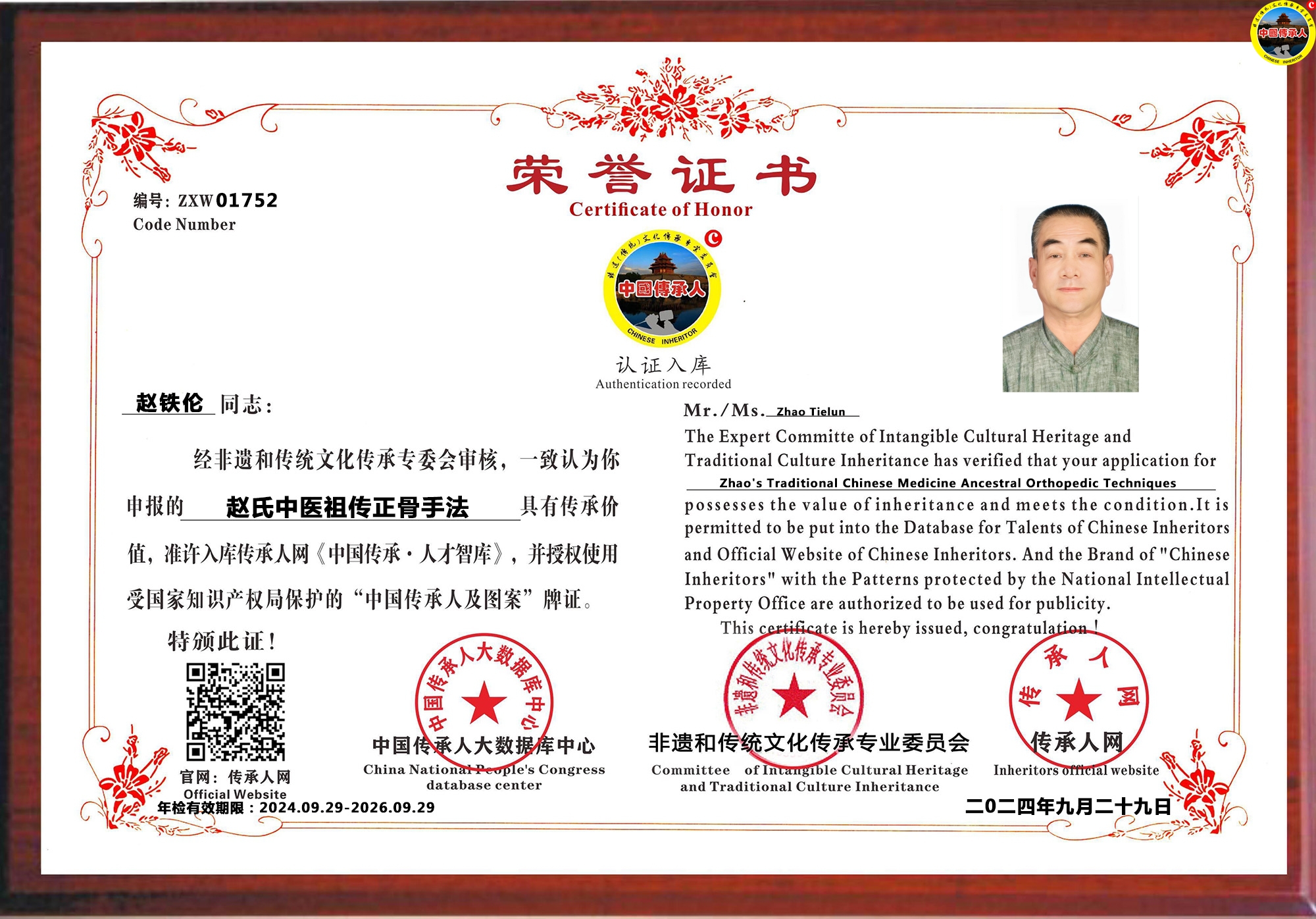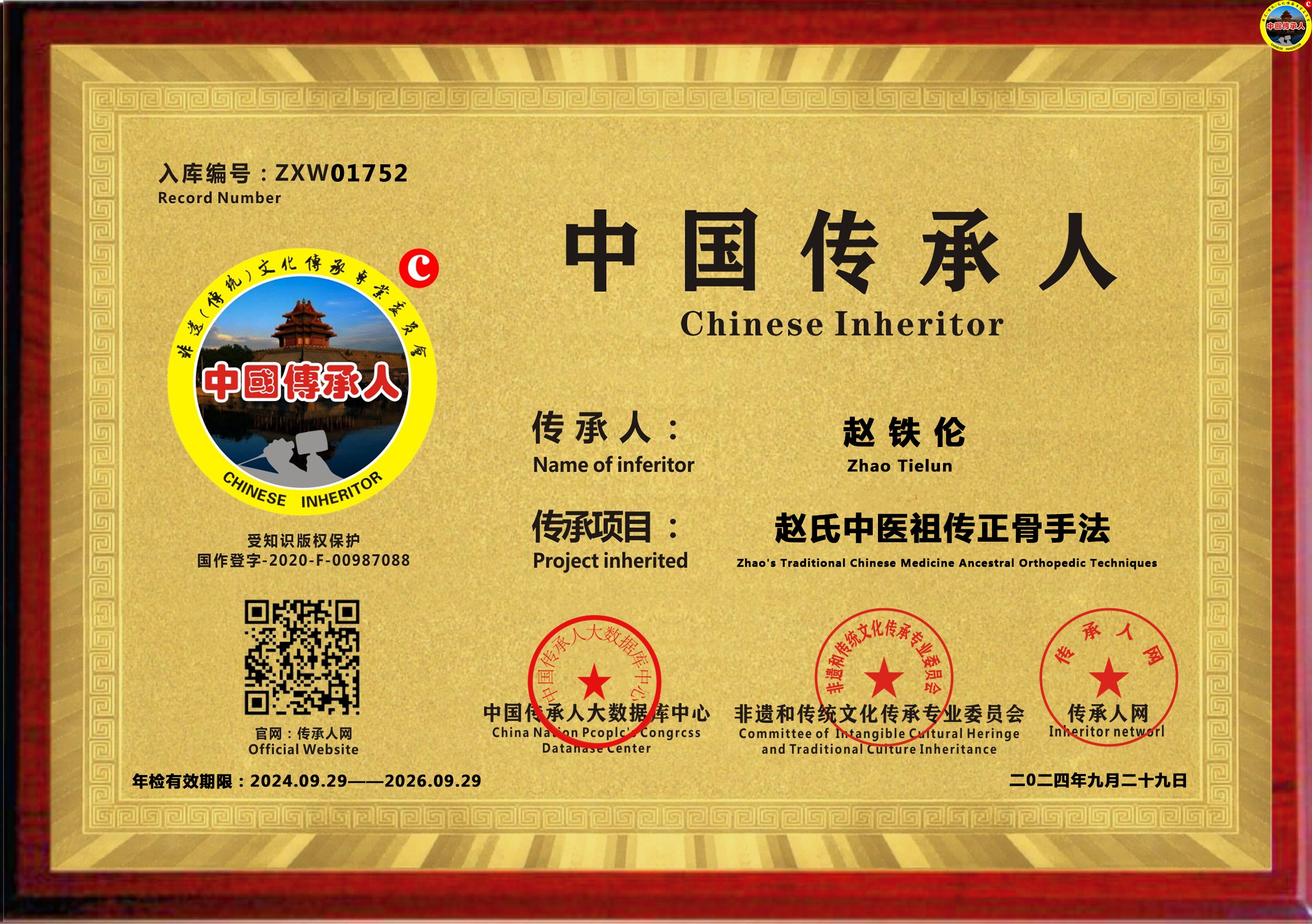 赵铁伦也非常注重传统中医的传承。如今第五代传人赵南南——赵老师的女儿也已具备一定的理论基础和实践经验,并取得相应的资格证书。承祖训,不忘初心,传医术,治病救人。赵铁伦行医几十载,始终奉行术可专攻,道亦有道,以人为本的中医理念。其高超的医术获得了患者的广泛赞誉,其高尚的医德更是为人们口口相传。赵铁伦以自己的实际行动向世人展示了大医国风,是我们传统中医的楷模。后来者当继而承之,发而扬之,使我们的传统中医更加辉煌,在世界医林熠熠生辉!