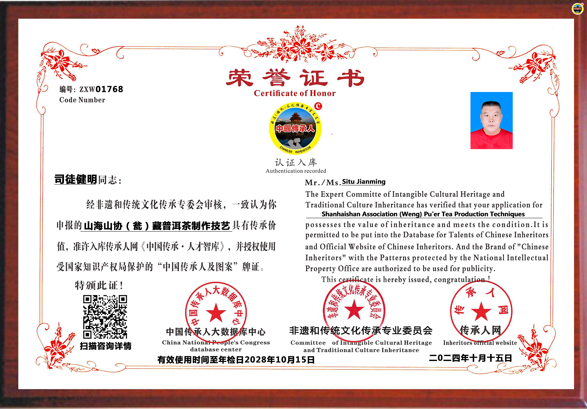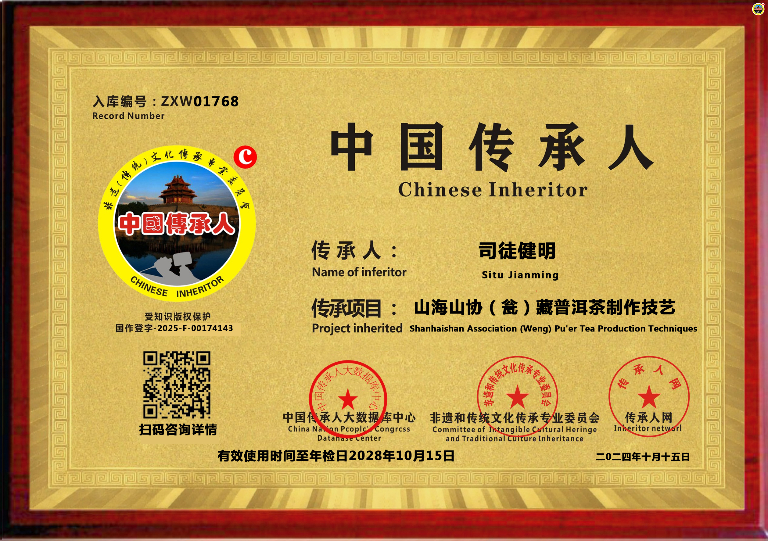 司徒健明不仅在协藏普洱茶技艺上有着深厚的造诣,更是将其独到的制茶理念和技艺传承给了下一代。他创立的开平市山海山茶庄,成为了这一传统技艺的现代载体,将这份对茶文化的热爱和对品质的追求传递给了更多的人。他的女儿司徒颖茵,作为传承者,不仅继承了父亲的技艺,更将这些传统技艺与现代市场需求相结合,推动茶庄的持续发展和创新。这样的传承不仅是技艺的传递,更是文化和精神的延续,对于保护和发扬传统茶文化具有重要意义。