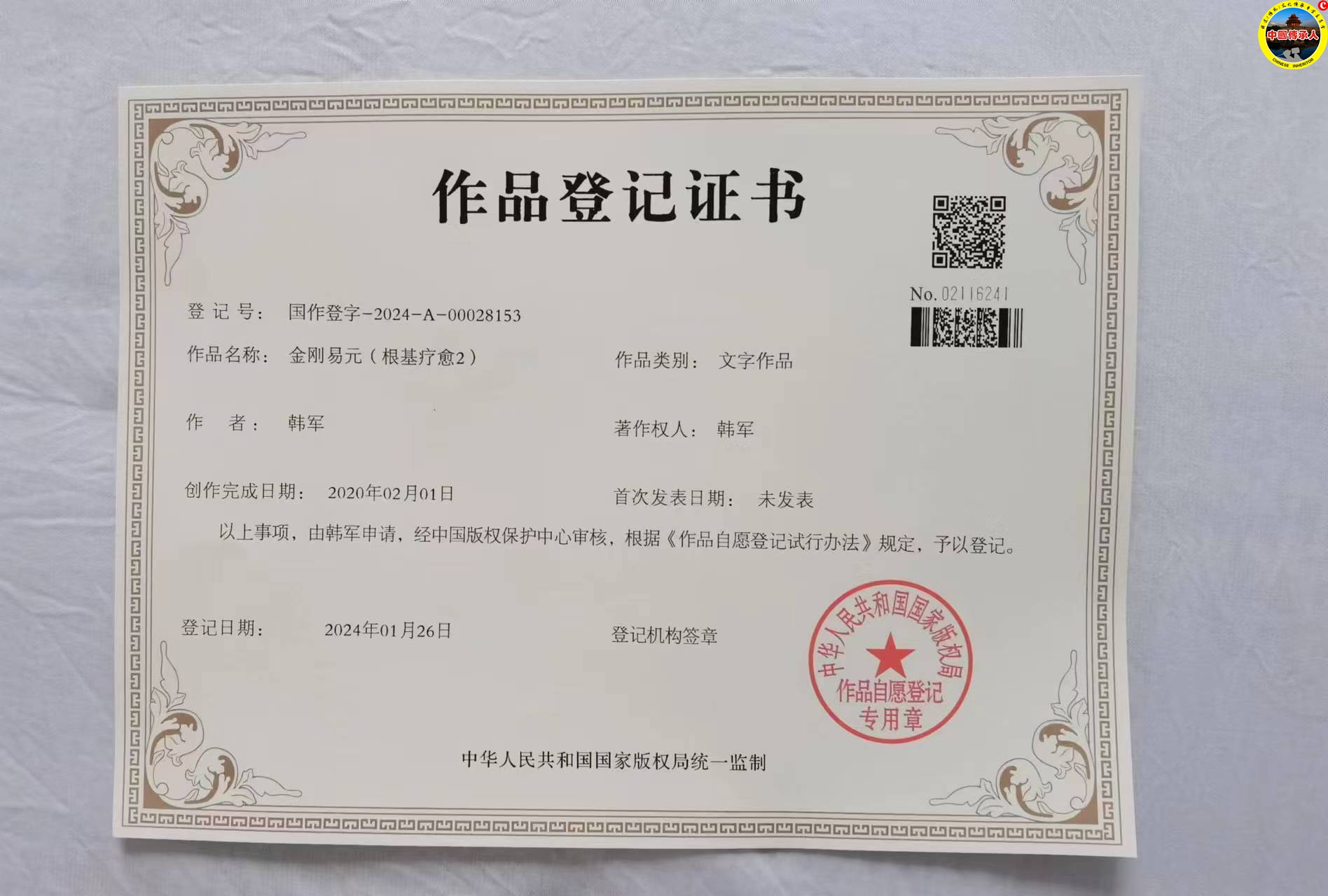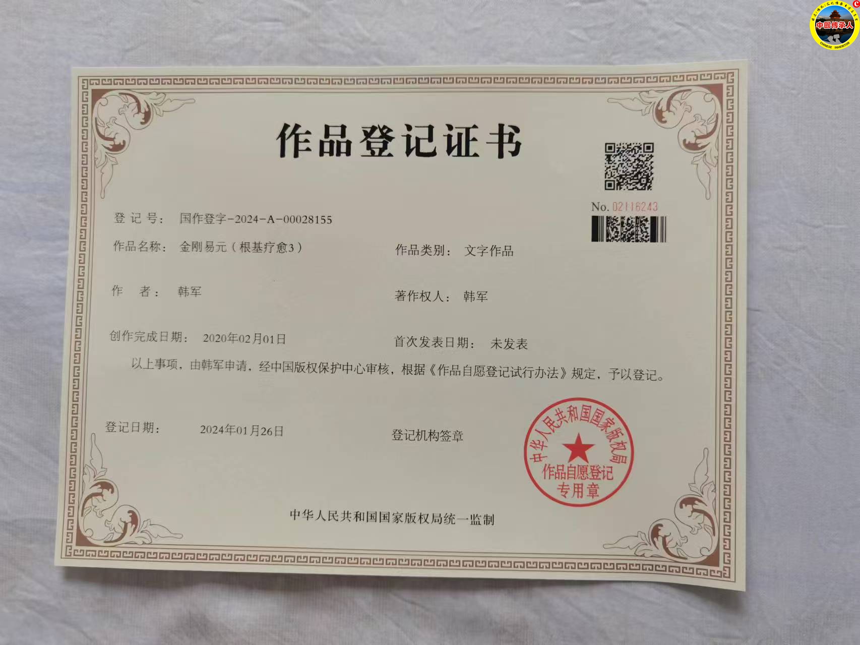 韩军已经申请国家版权保护1调脏腑(祛湿减脂)2调骶髂(强腰升阳)3调宗筋(固肾补炁)4撮谷道(通脉增温)通过根骶手法(开筋+点穴+通脉)调理身体与易筋洗髓功法结合最终达到性命双修,精气神全面提升。