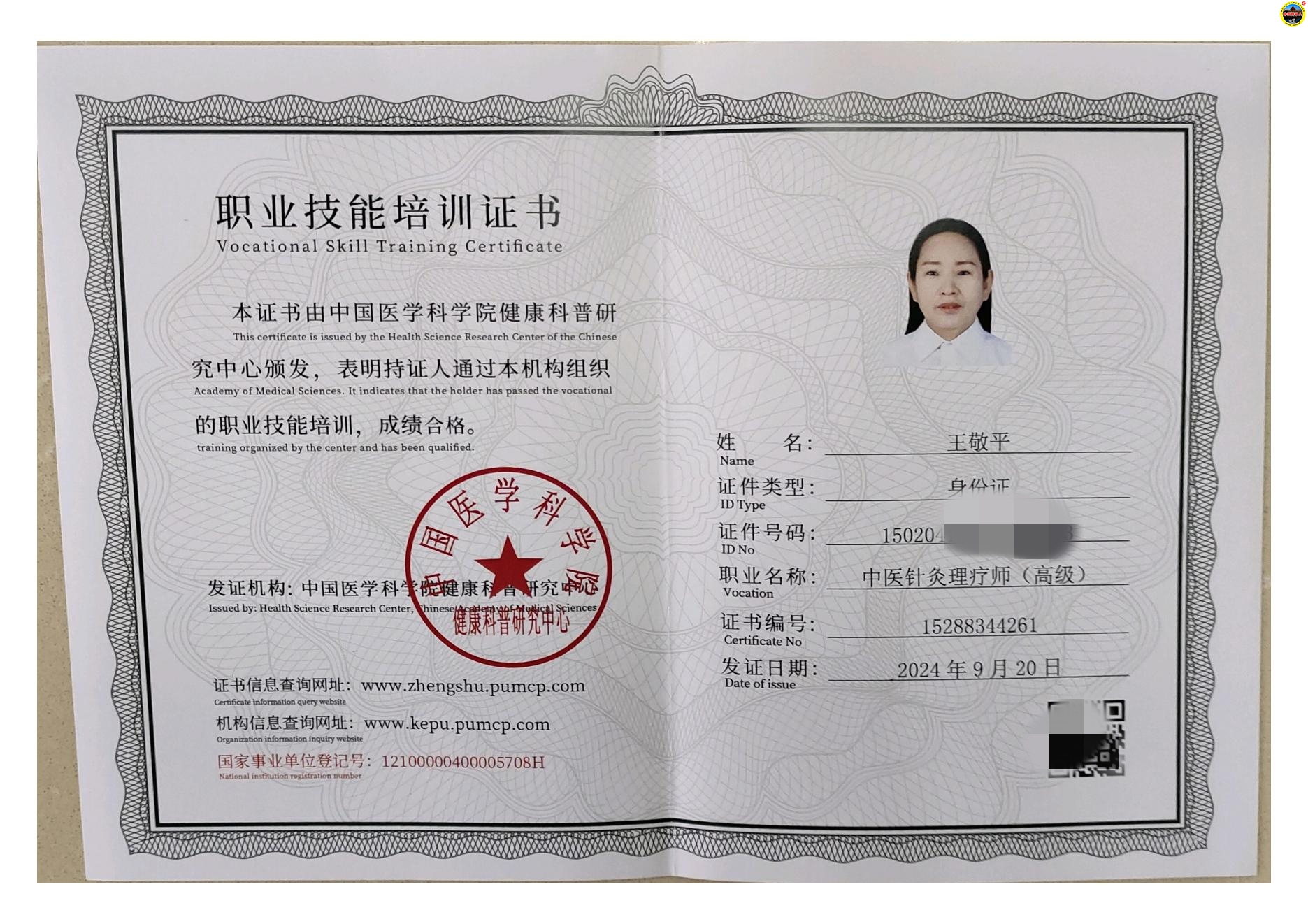 王敬平,女,1971年出生,2012年开始专研中医外调药膜给药,至今治疗好无数疑难杂症。她的初衷是为患者减轻病痛、带去健康希望。后形成调治体系,愿为更多人解除痛苦、带去希望。