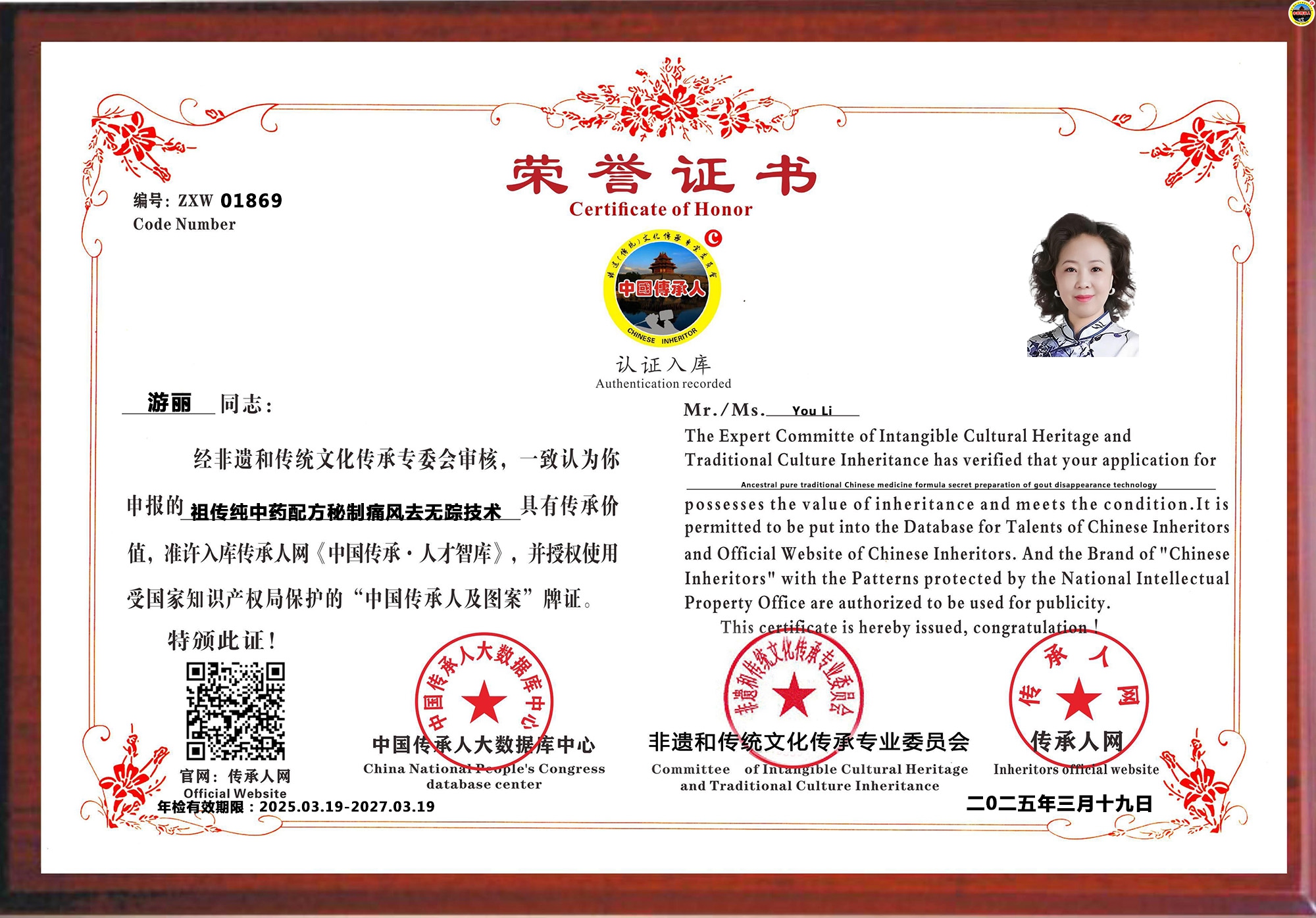成果:祖传纯中药配方秘制痛风去无踪技术