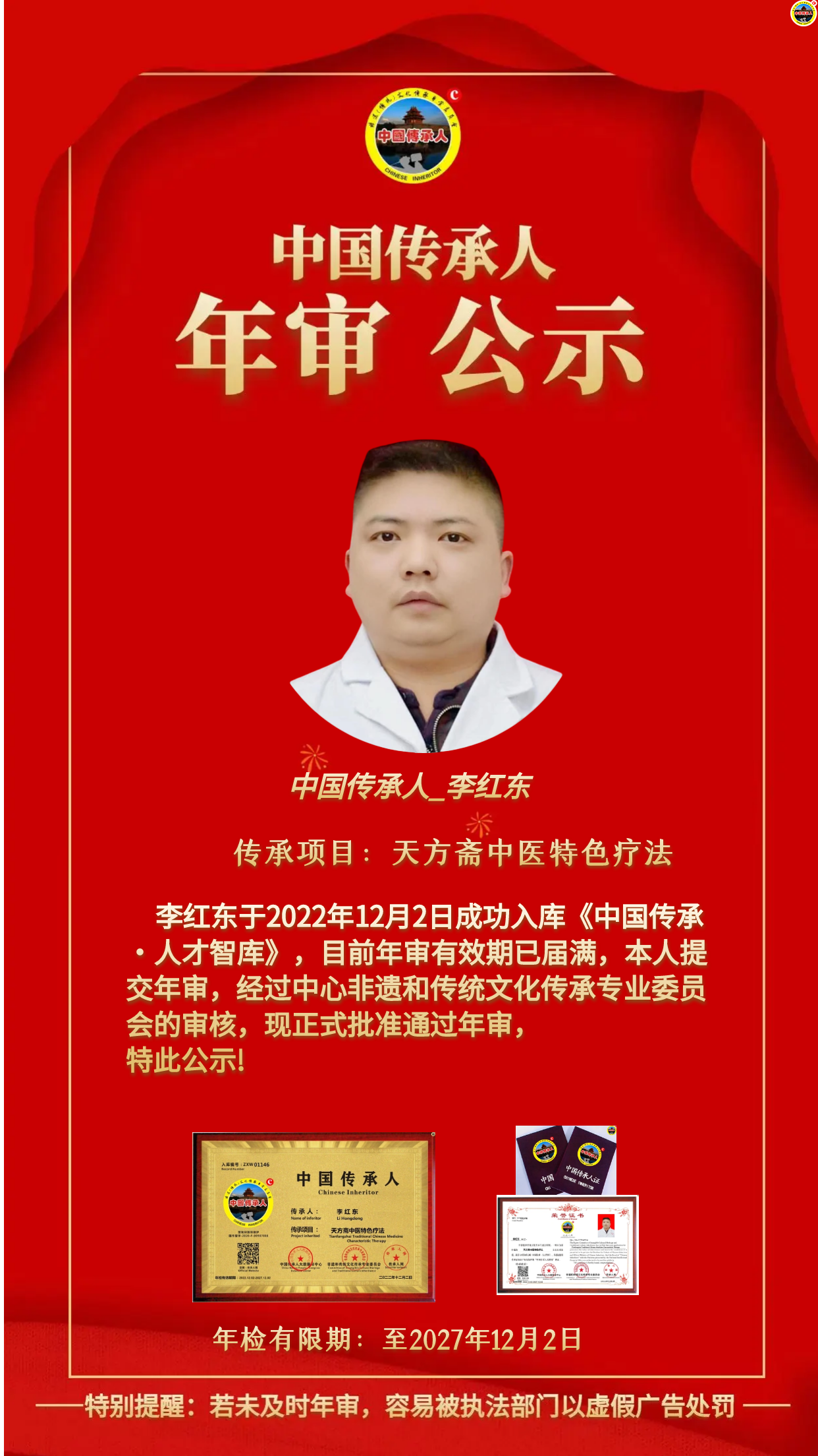 年审公示:1146位“天方斋中医特色疗法”传承人李红东