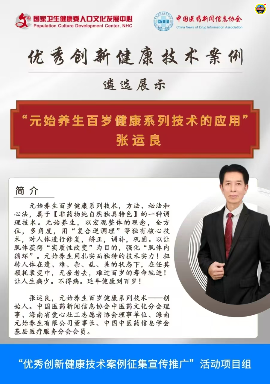 据了解,张运良,《元始养生百岁健康系列技术》——创始人。其核心技术、方法、秘法和心法。属于【非药物纯自然独具特色】的【逆调顺补】的一种“复合逆调理”技术。