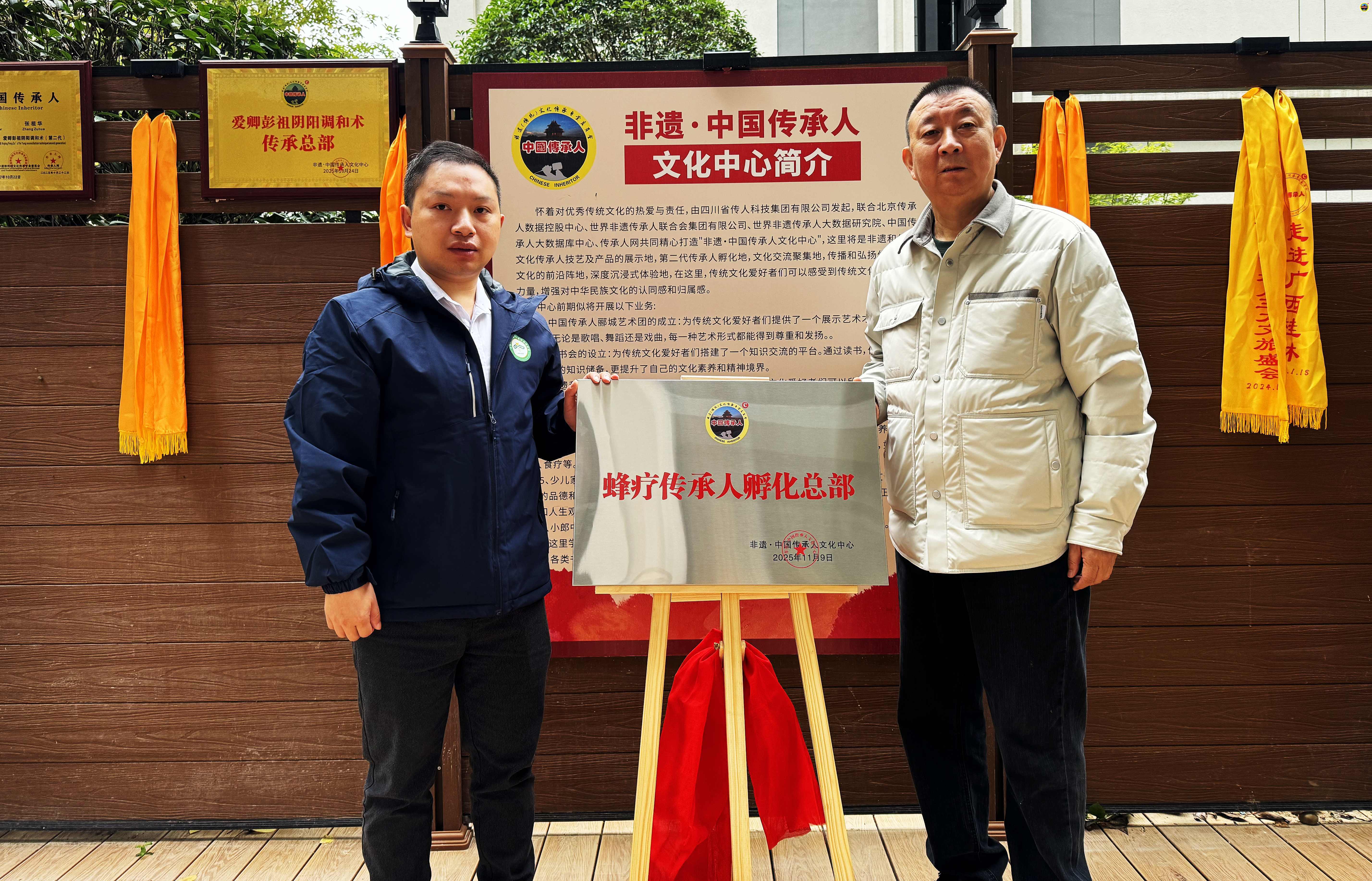 传承人网:2025年11月10日,蜂疗传承总部揭牌仪式在非遗·中国传承人(成都)文化中心隆重举行。非遗·中国传承人(成都)文化中心潘辉主任与中国传承人蜂疗传承工作委员会主任王勇刚共同为总部揭牌,标志着这一承载着中医蜂疗千年智慧的非遗传承平台正式启航。此次活动吸引了中医药界专家、蜂疗从业者及媒体代表等百余人参与,共同见证这一传承中医文化、推动绿色疗法创新发展的重要时刻。