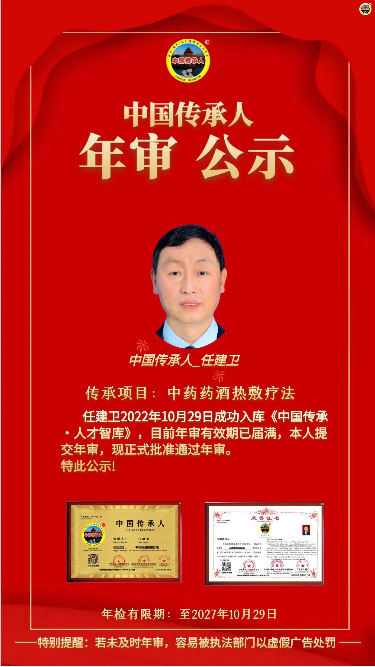 年审公示:1105位“中药药酒热敷疗法”传承人任建卫