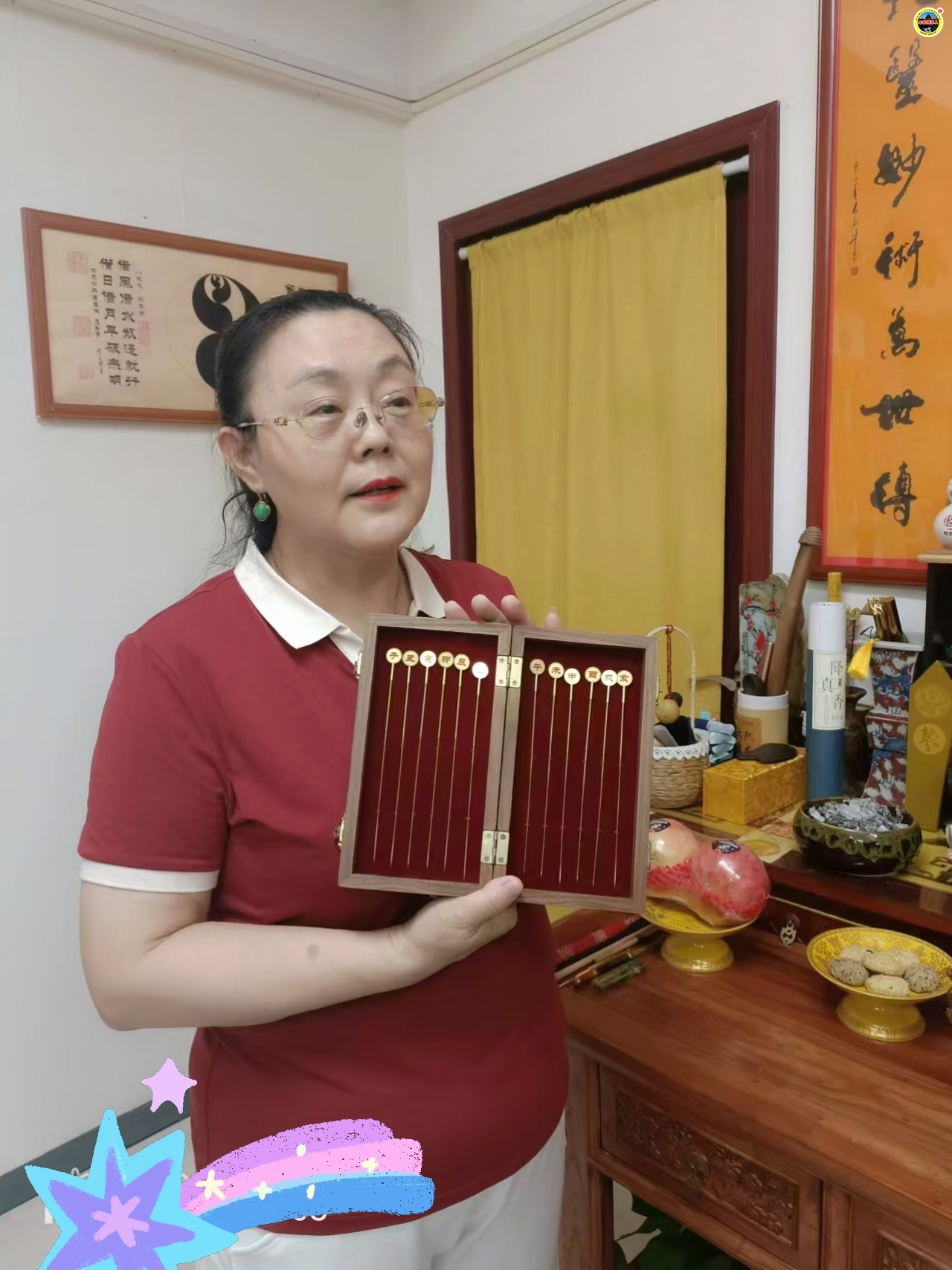 为了更好的传承2018年董新芳在药王门第四十八代总掌门肖鸿钧教授指导下,根据药王针传承故事讲意,用古老医术和现代科技相结合研发成整套药王乾坤针 产品。其安全可靠,可远程,不破皮,直接别在病痛处的衣服上或者视频均可以达到针灸调理止痛除病的效果。并且病人能感受到有明显的针感反应,获得广大客户认可。