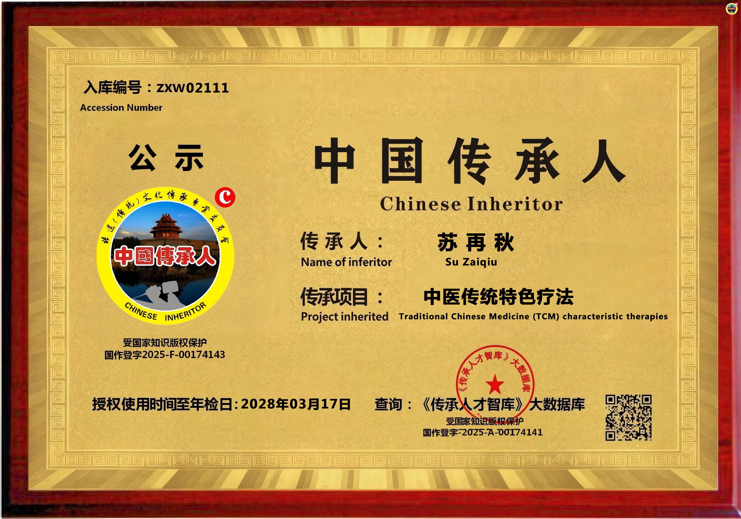 苏再秋,年逾花甲,现年六十六岁,现居住于蜀中双流蛟龙港锦绣楠郡。自中学时期起,便师从舅父。舅父出身杏林世家,其祖辈皆为悬壶济世之医家。舅祖年少时即跟随高祖研习岐黄之术,传承家学,精研医理,历经数代薪火相传,医道源远流长。舅公毕业于黄埔军校医学专业,学贯中西,医术精湛。